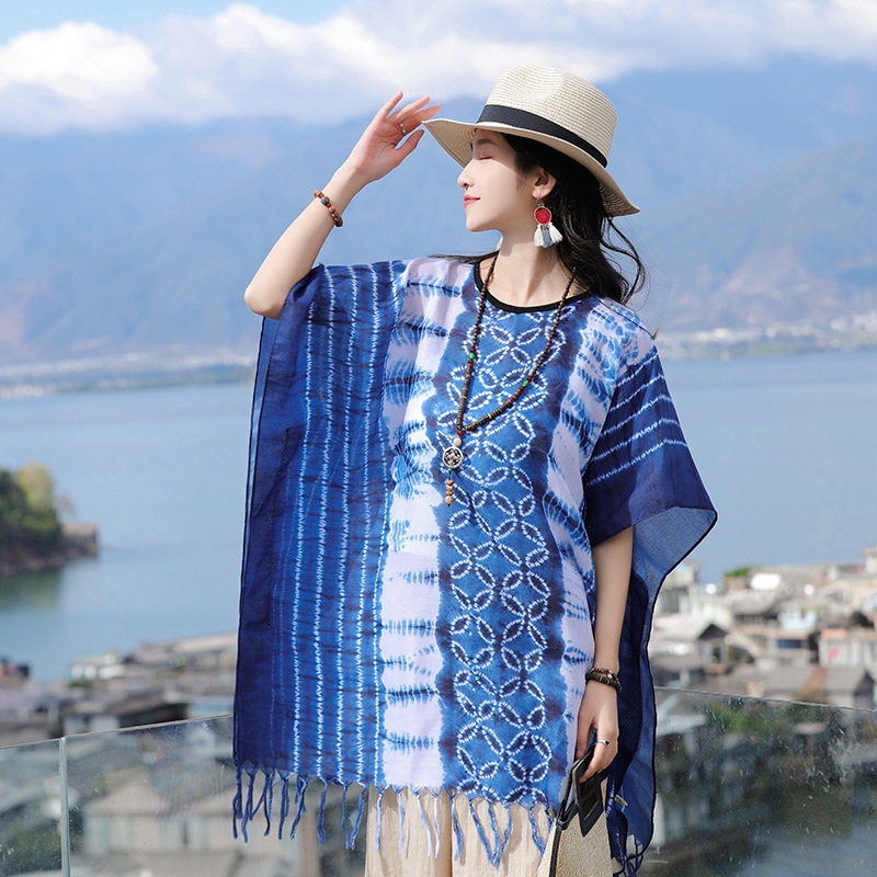 에스닉 스타일 스카프 대형 자외선 차단제 숄 여성용 여름 얇은 외부 스카프 운난 만능 해변 비치 스카프스토어 가기