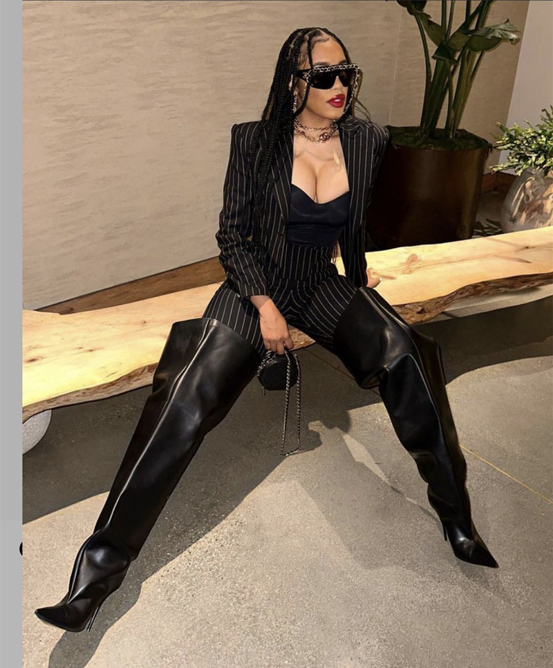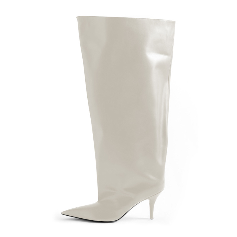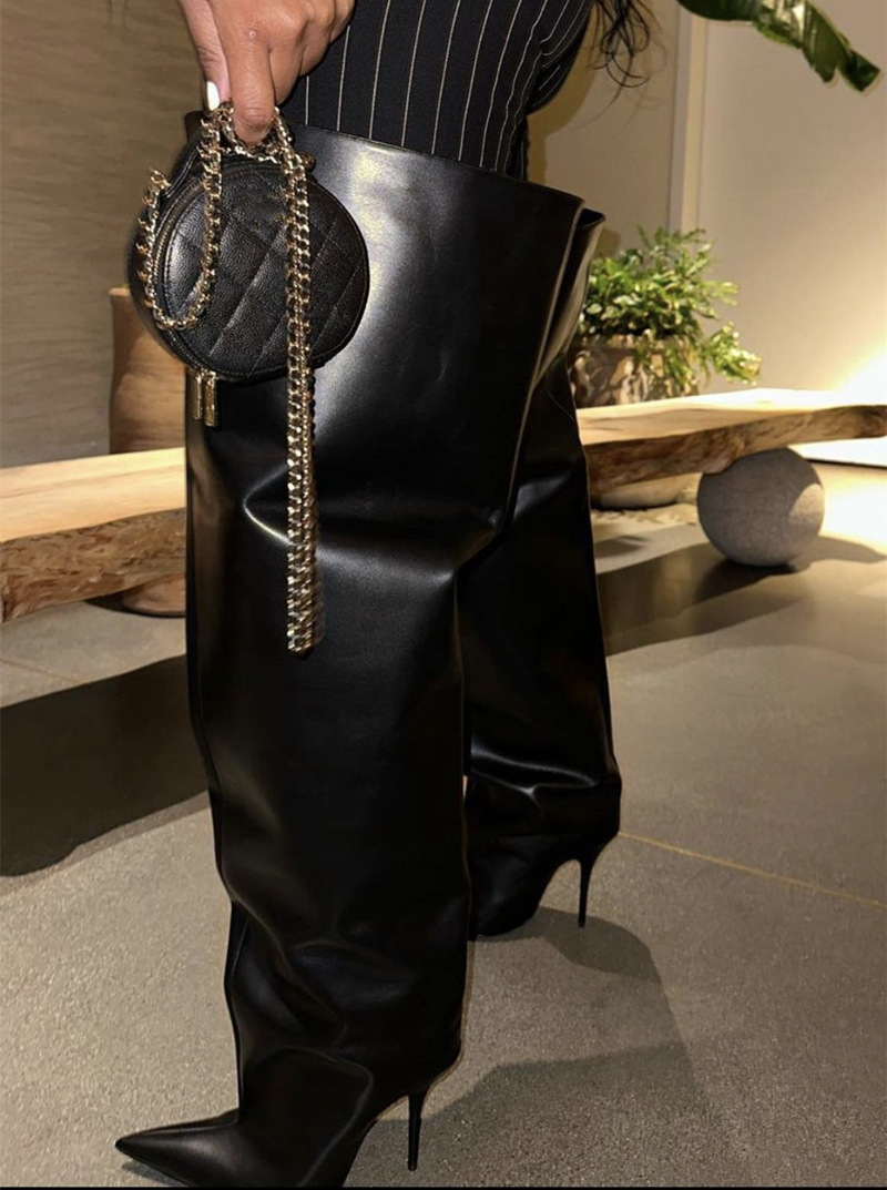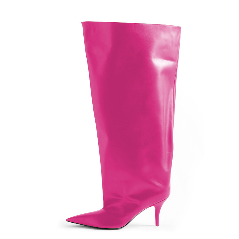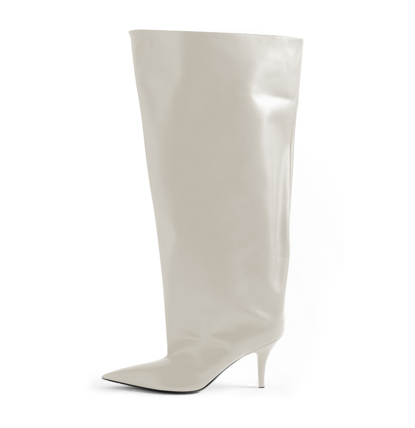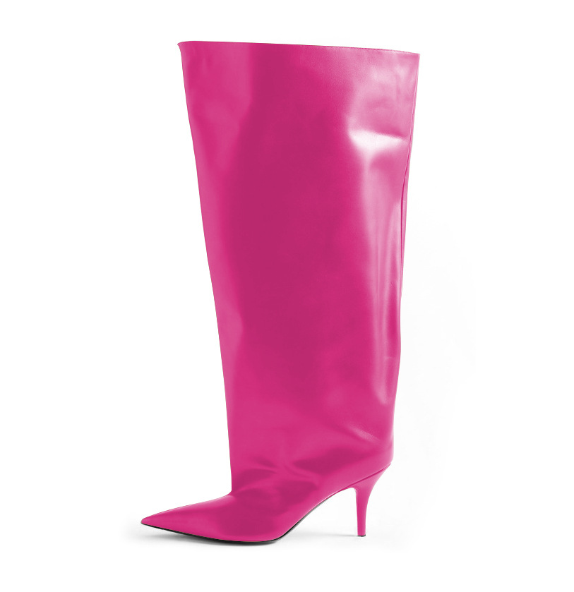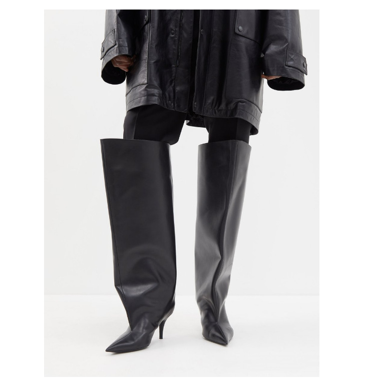 2024년 신상 유럽 및 미국 패션쇼 스타일 하이힐 뾰족코 스틸레토 롱부츠 개성있는 오버니 부츠 여성화스토어 가기