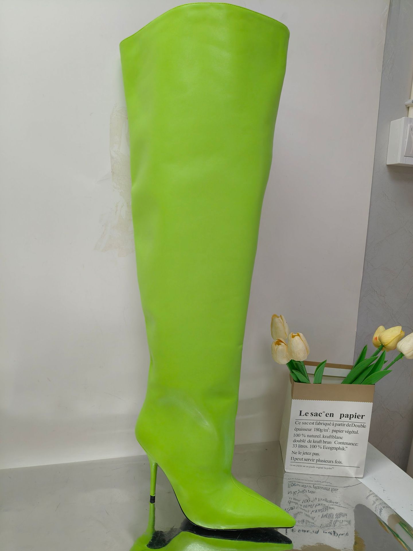 • 녹색 11cm 무릎 위 부츠-1