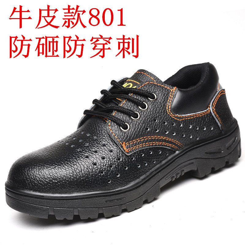 크로스 보더 여름 소가죽 통기성 노동 보호 신발 구멍 미끄럼 방지 내마모성 로우 탑 작업 신발 강철 발가락 보호 안전 신발