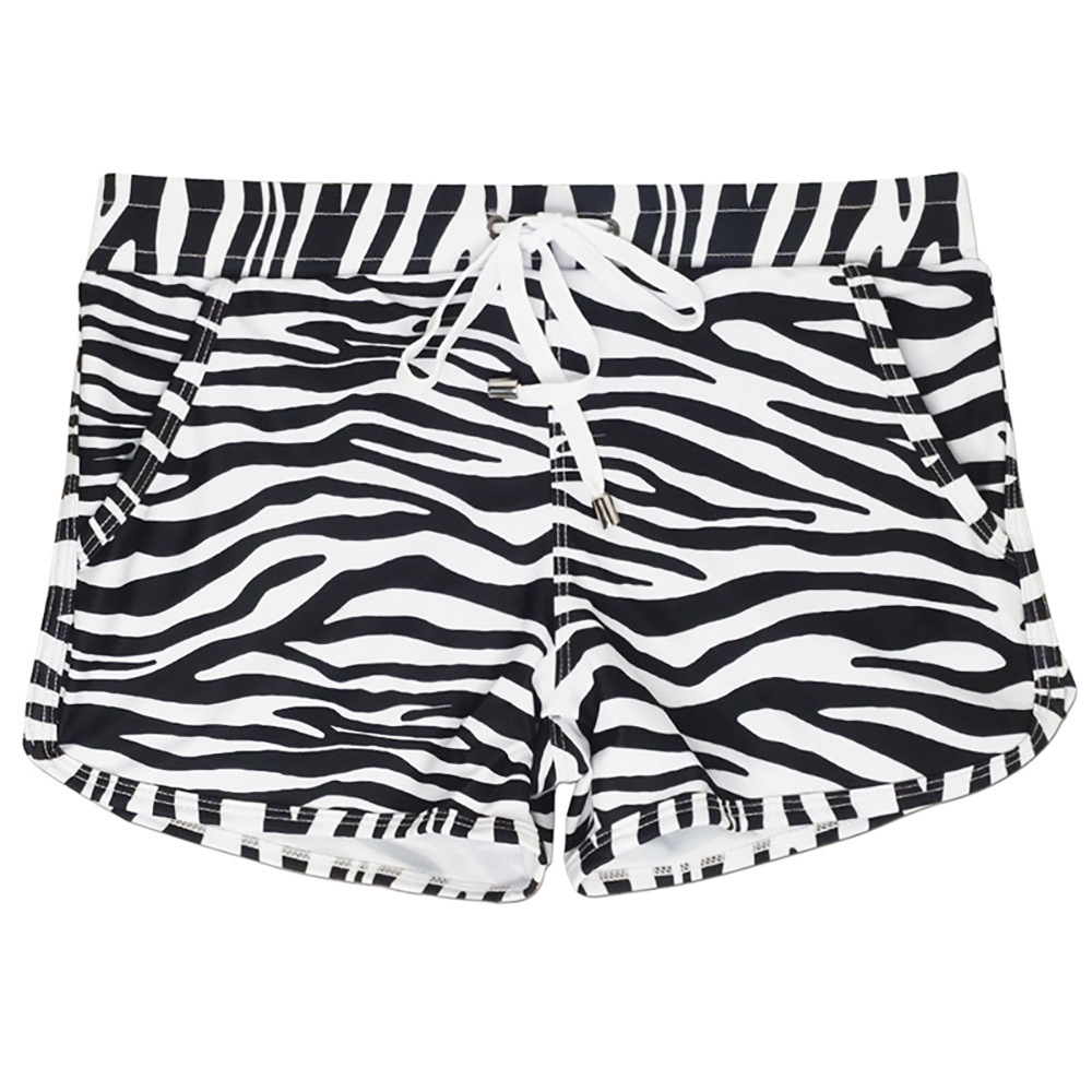 UXH 유럽 및 미국 남성용 얼룩말 스트라이프 더블 사이드 포켓 권투 선수 수영 트렁크 컵 패션 비치 속건 반바지 남성용스토어 가기