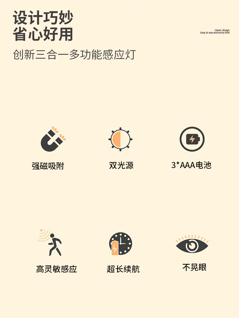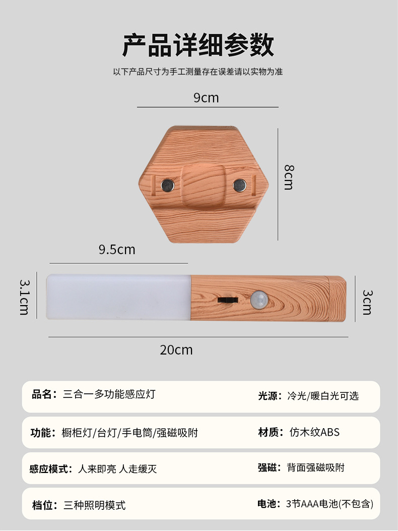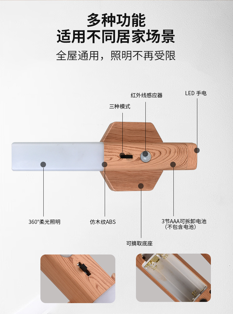 LED 창의적인 북유럽 스타일 다기능 USB 인체 감지 야간등 눈 보호 조명 비상등 3-in-1 벽등 자석 부착