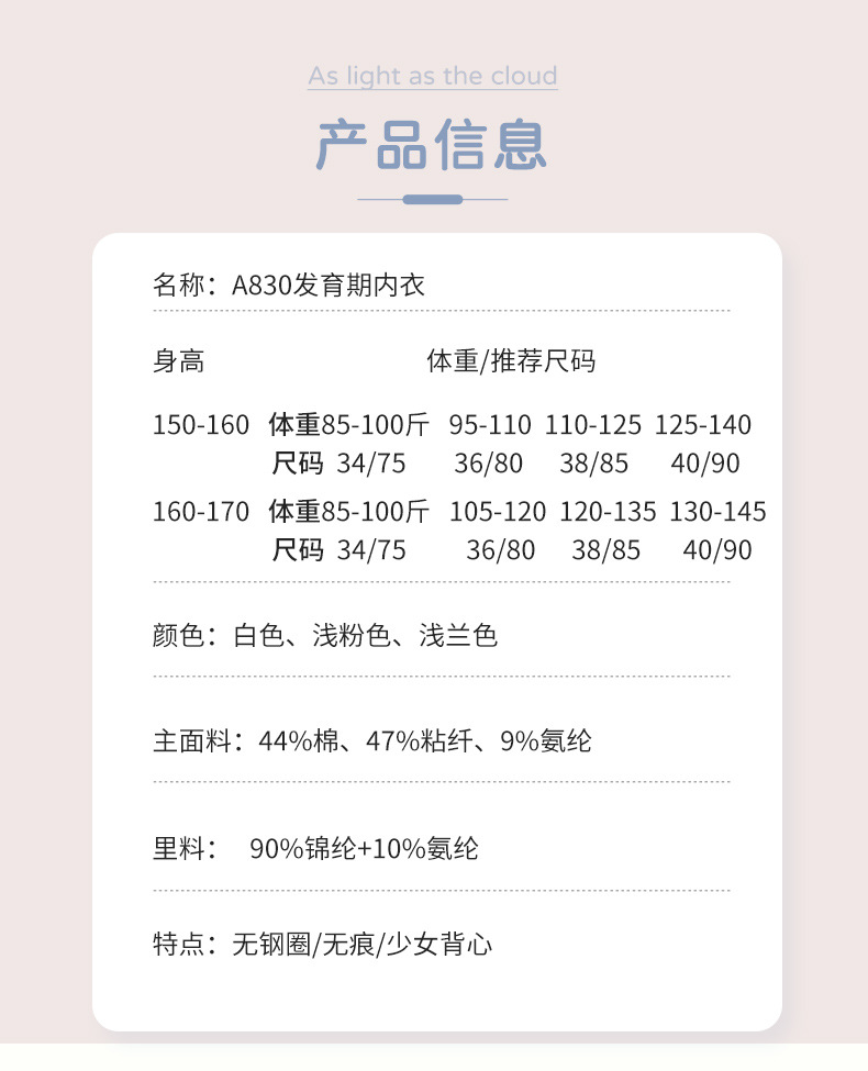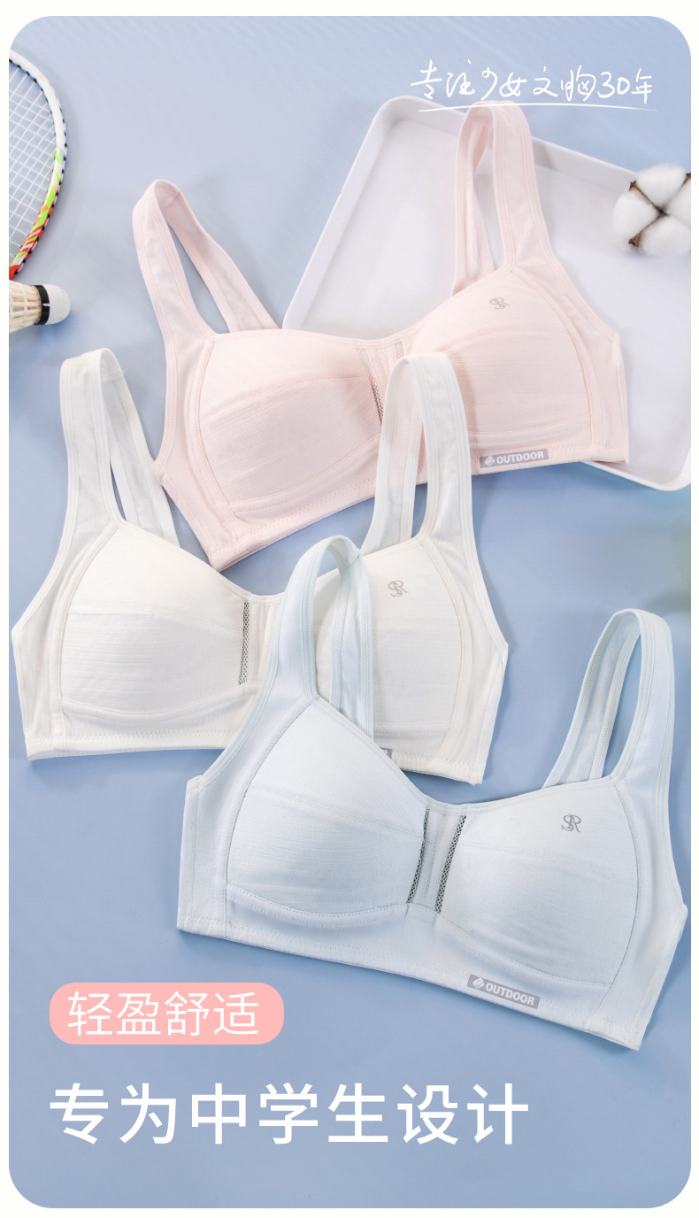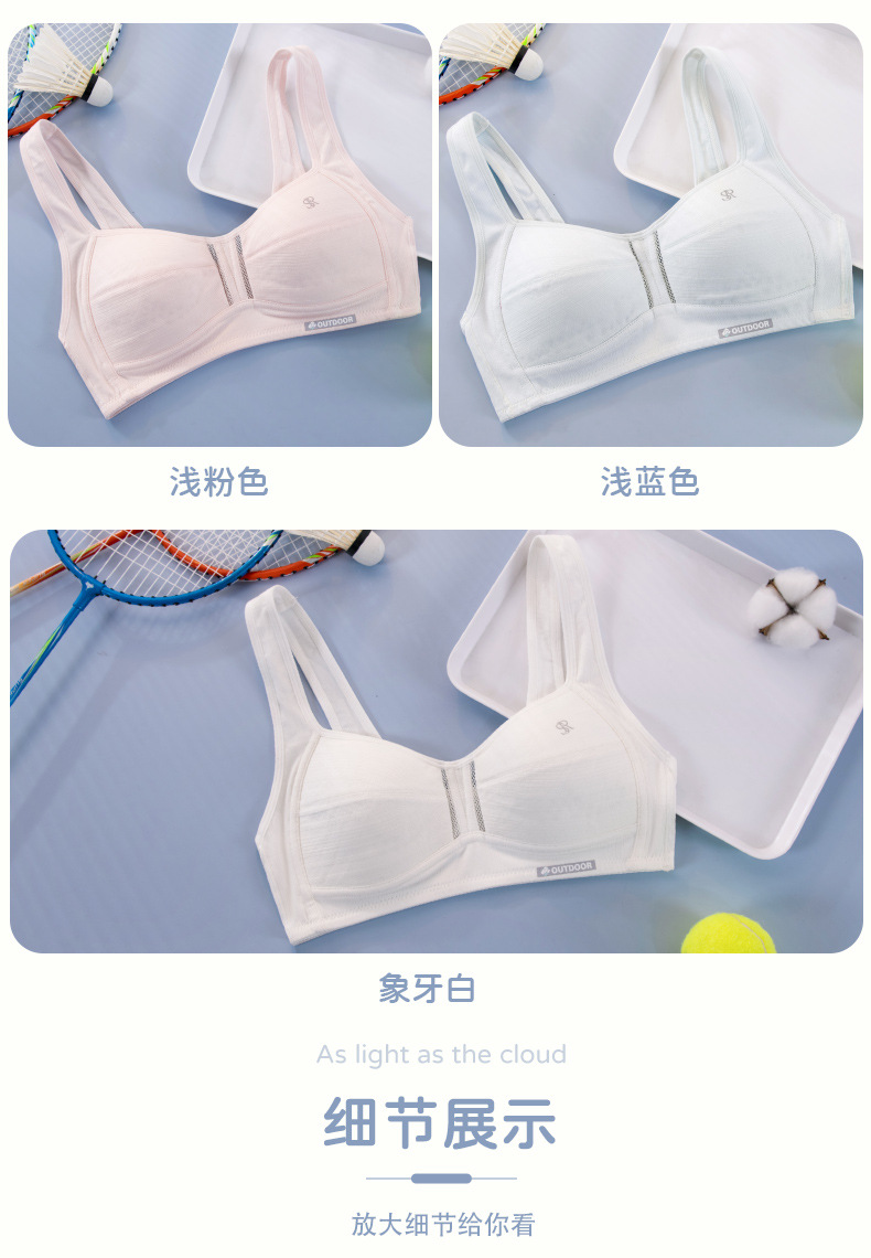 Anfeiya 여아 발달 조끼 스포츠 속옷 여성용 고정 통기성 구멍 컵 중학교 학생 풀오버 브라