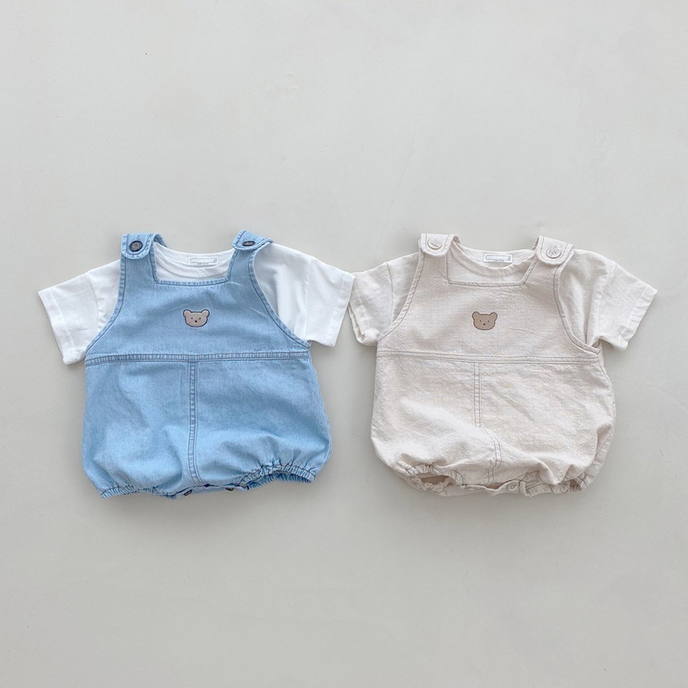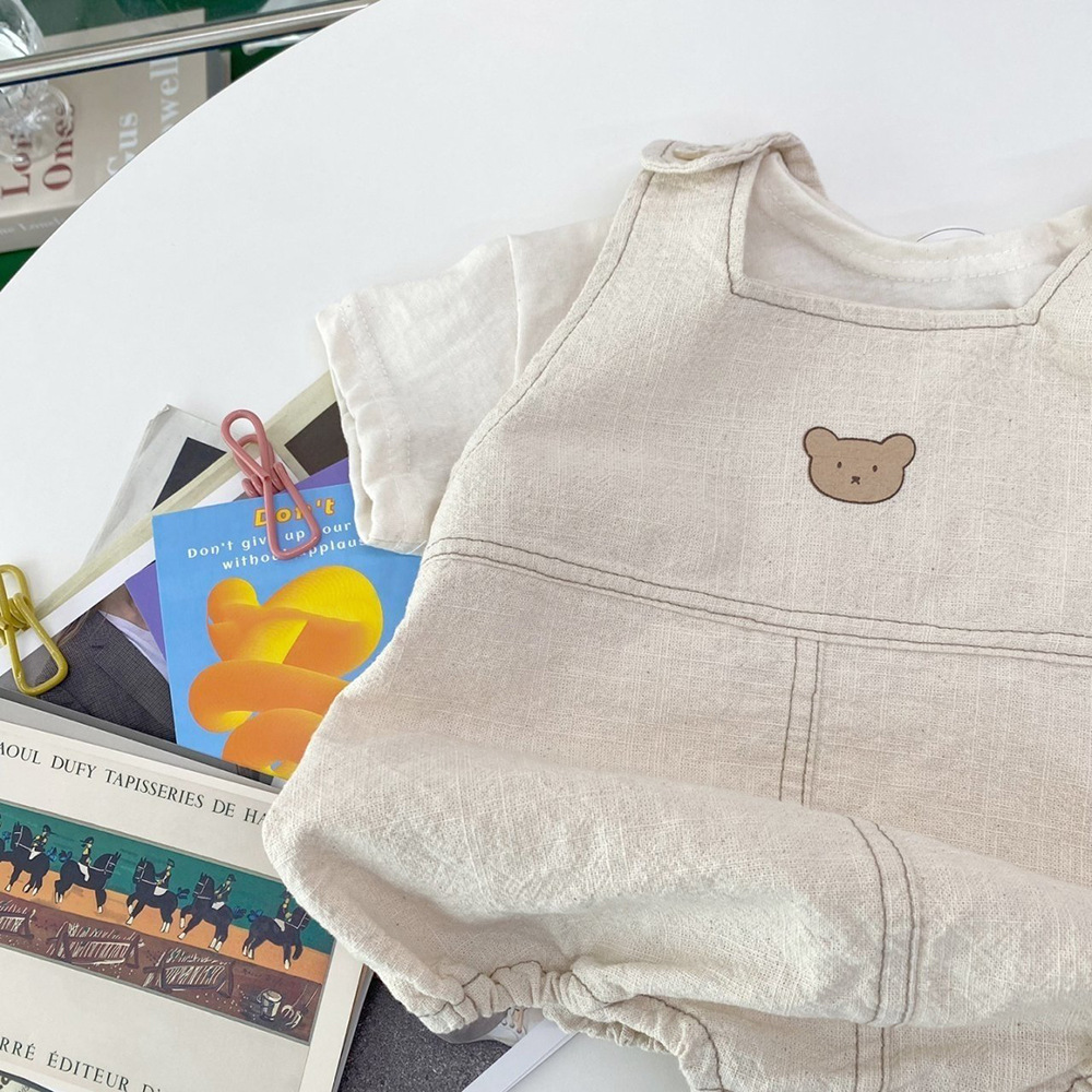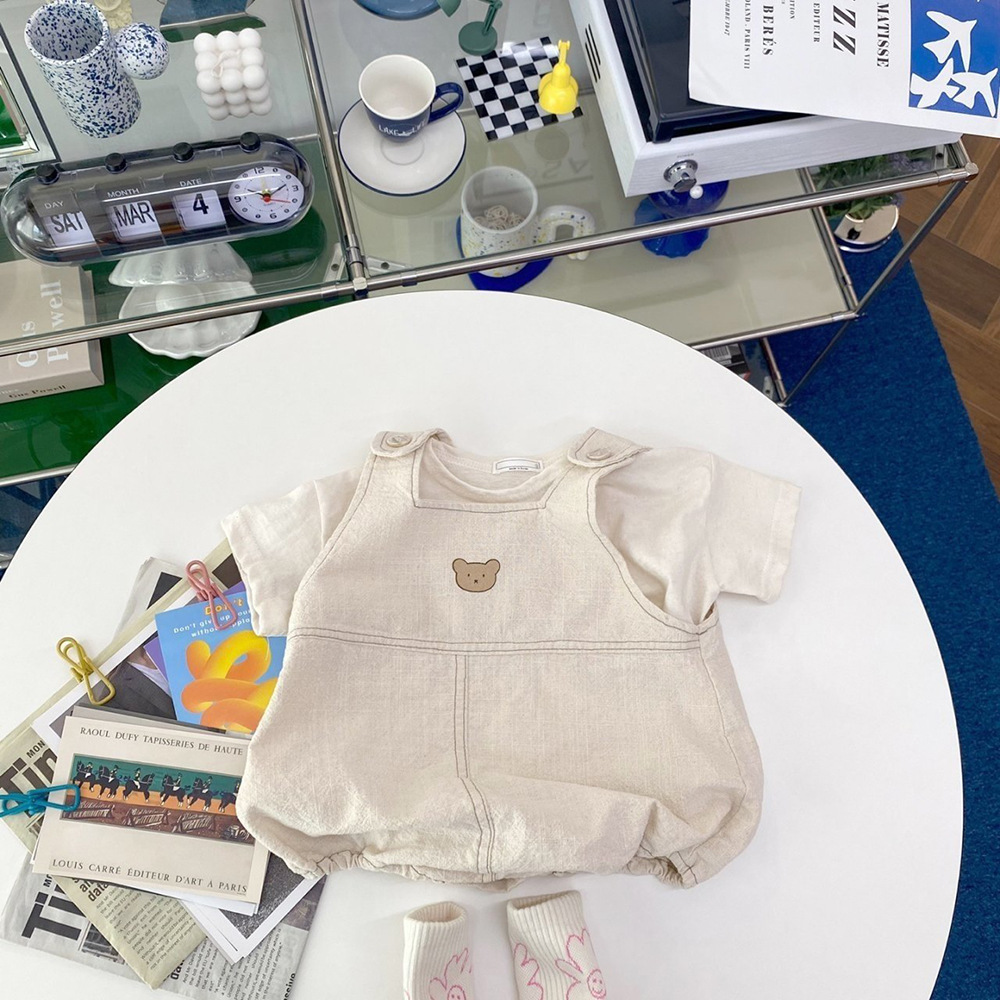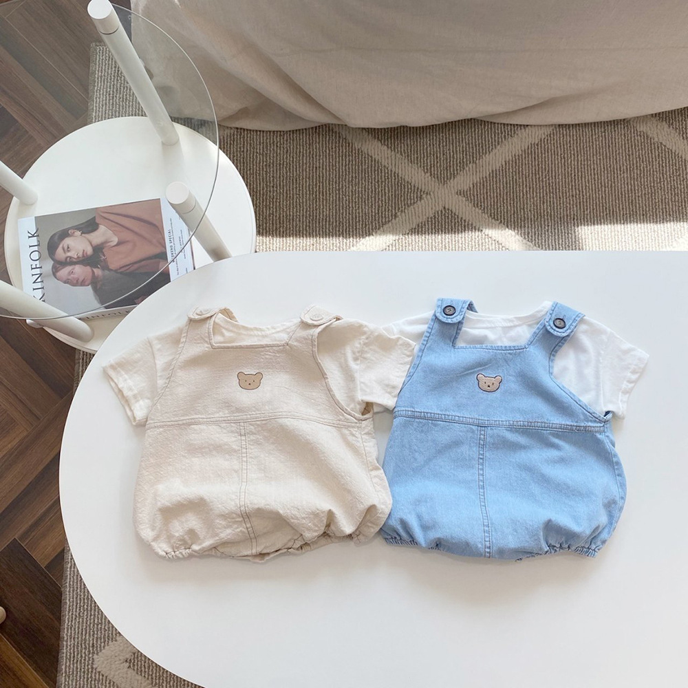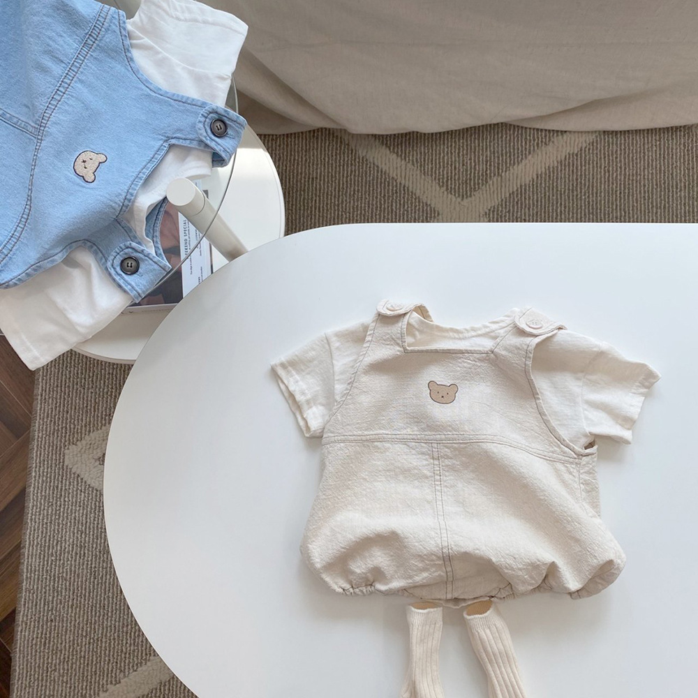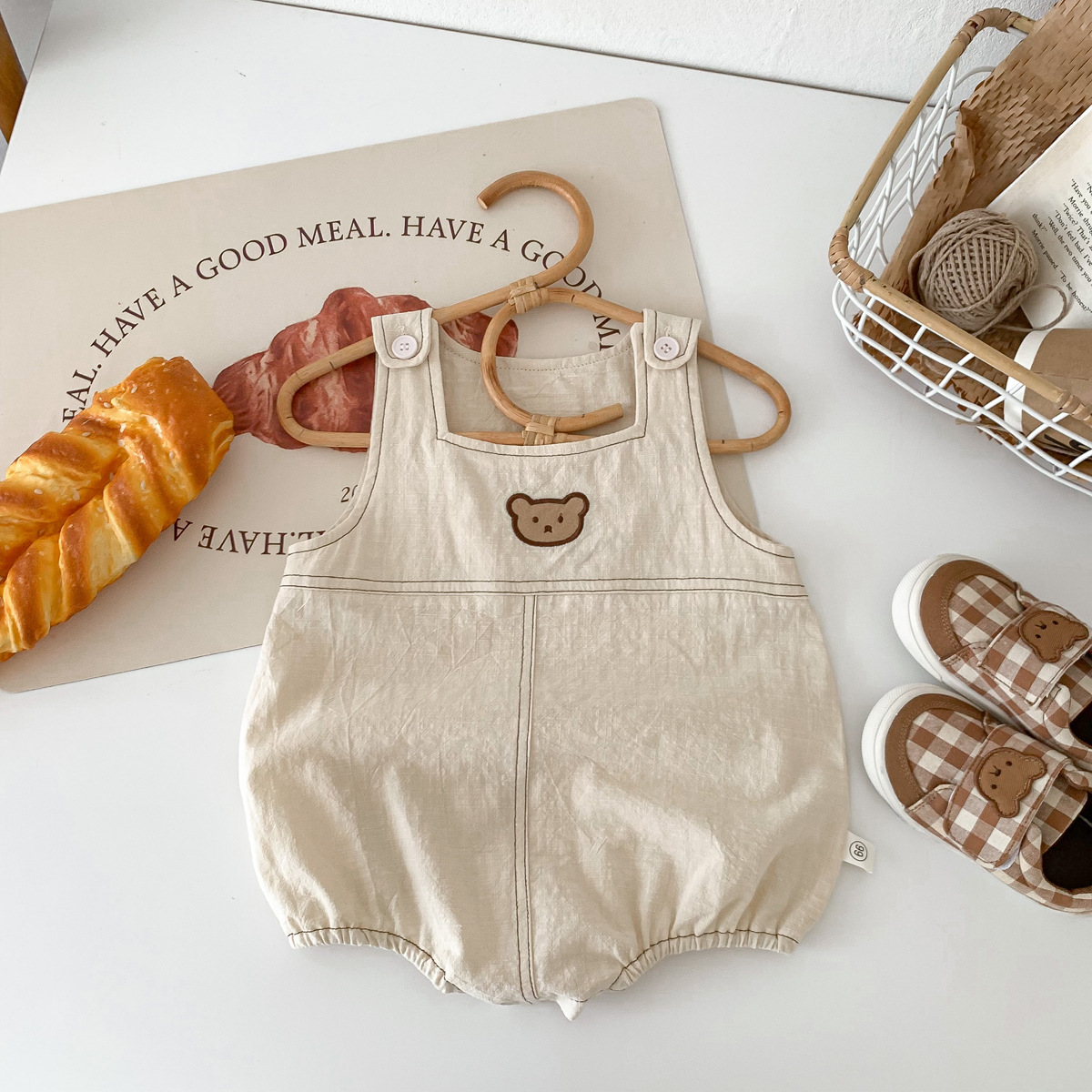 아기 여름 한국식 얇은 스트랩 가방 뚱뚱한 옷 소년과 소녀를위한 신생아 아기 곰 점프 슈트스토어 가기