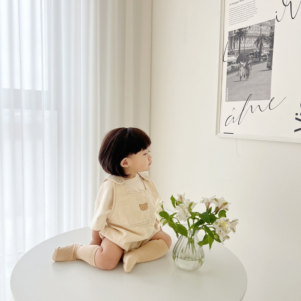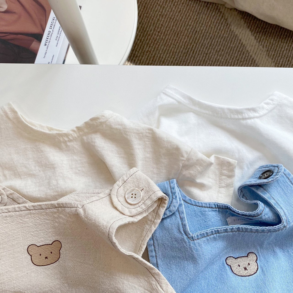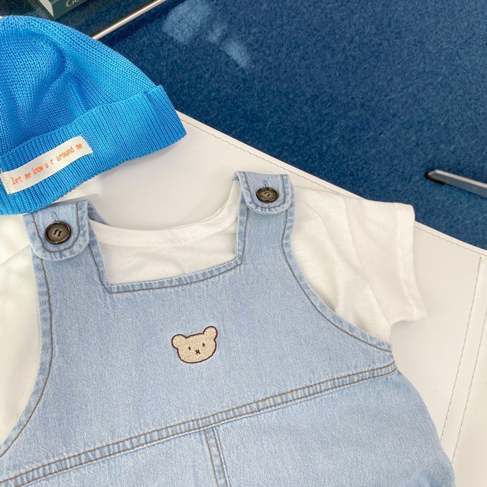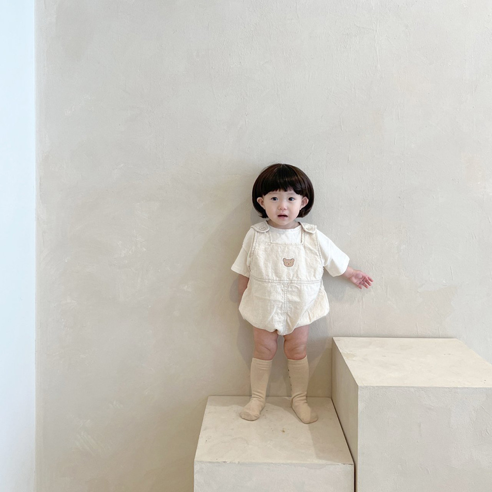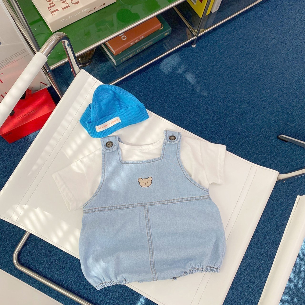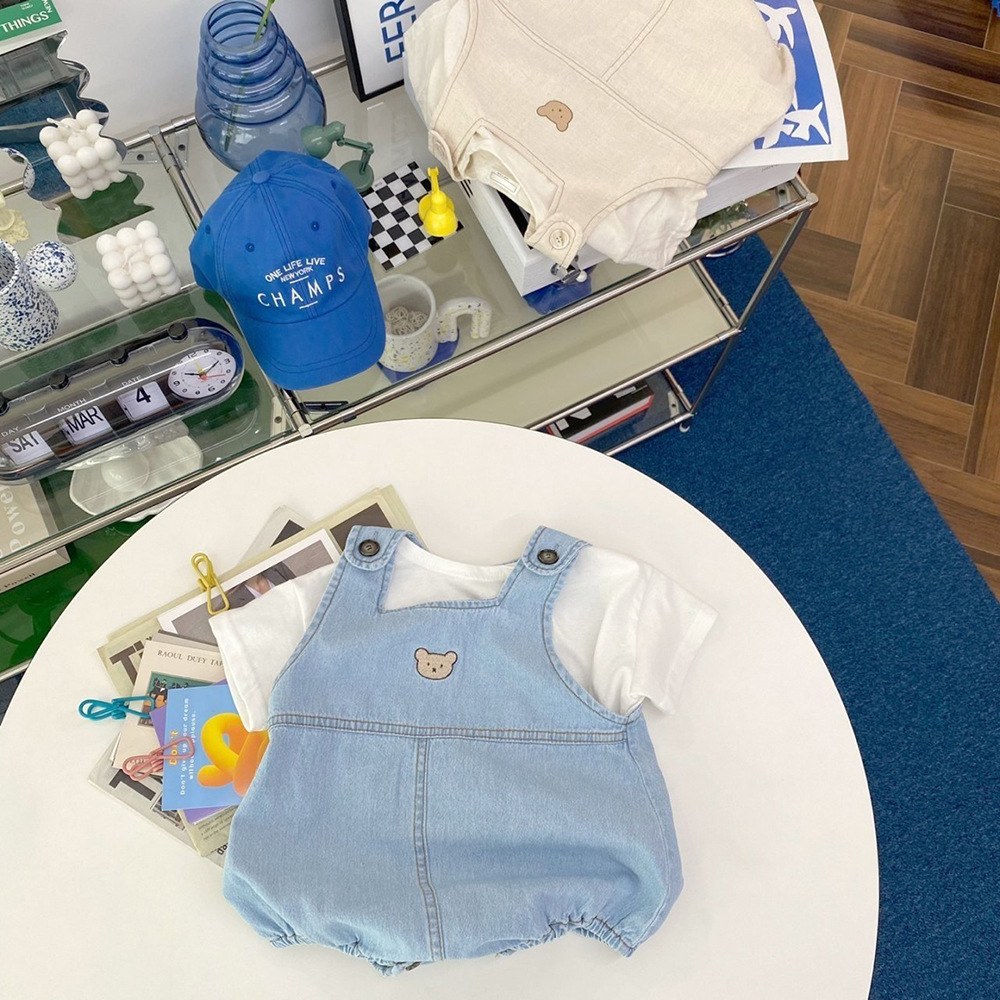 아기 여름 한국식 얇은 스트랩 가방 뚱뚱한 옷 소년과 소녀를위한 신생아 아기 곰 점프 슈트스토어 가기
