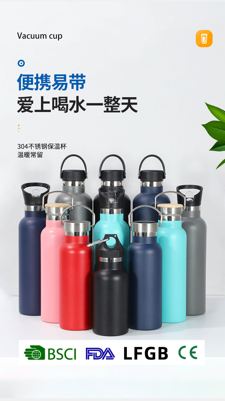 미국식 큰 입 보온병 500ml 스테인레스 스틸 대용량 스포츠 주전자 야외 휴대용 대나무 커버 등산 여행
