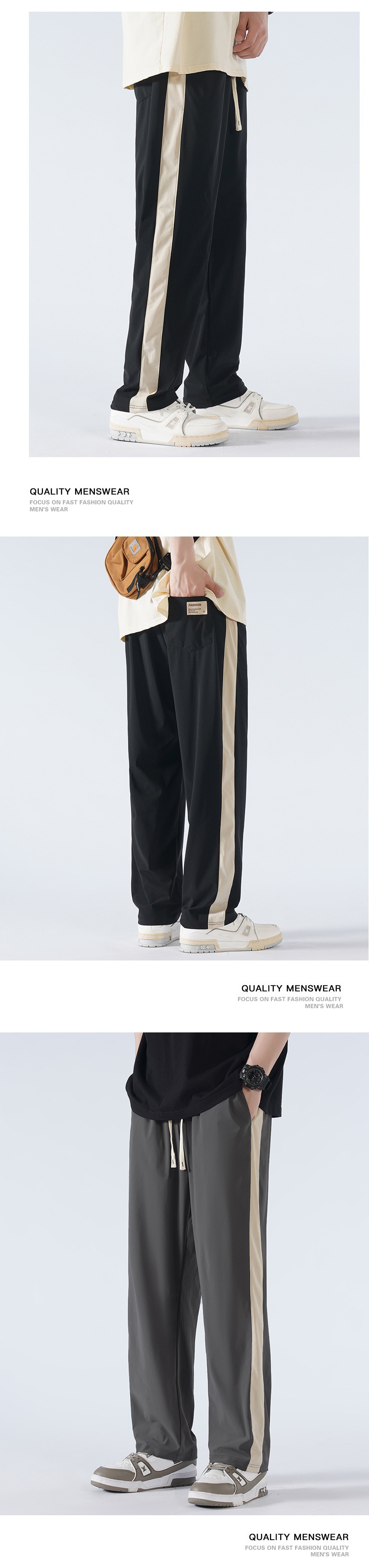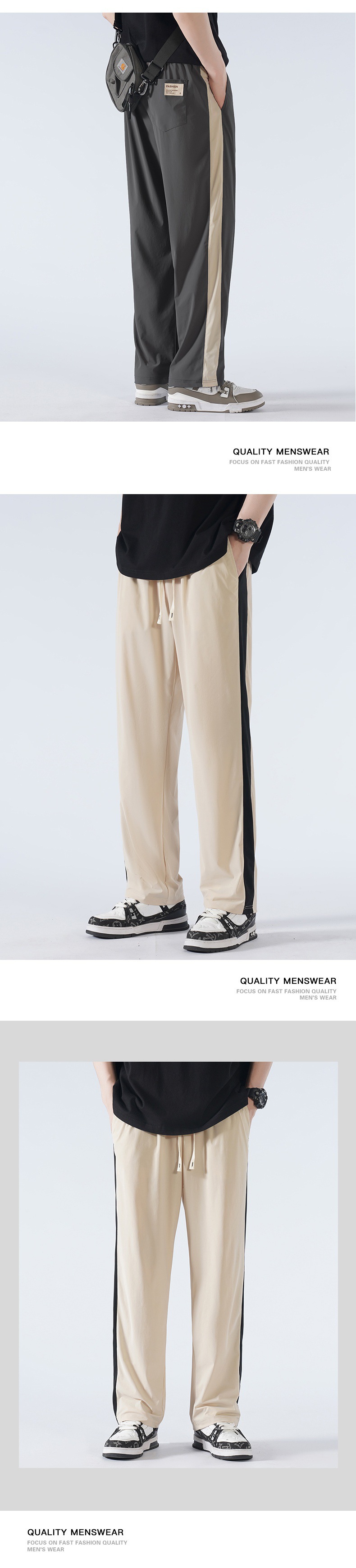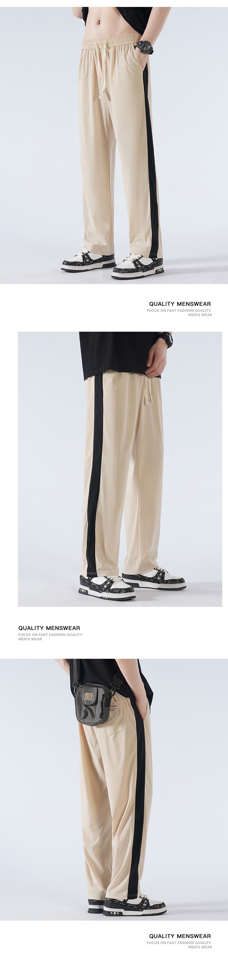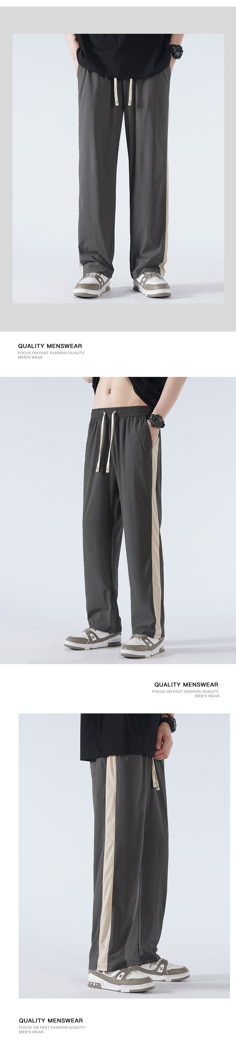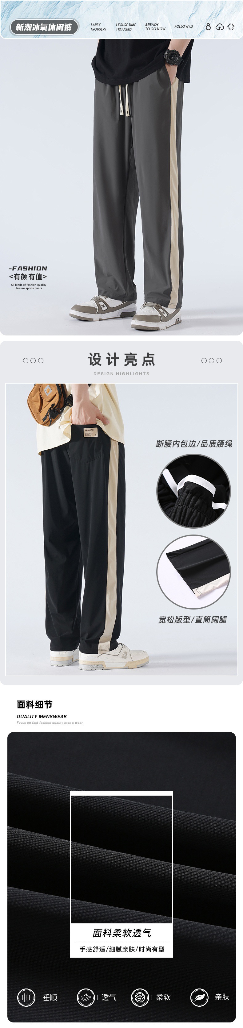 아이스 실크 캐주얼 바지 남성용 2023 여름 3 차원 허리 가장자리 스트레이트 팬츠 얇은 통기성 스포츠 발목 바지스토어 가기