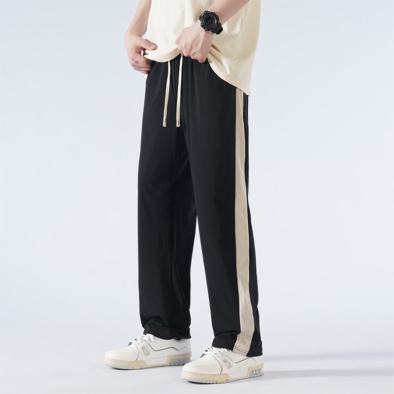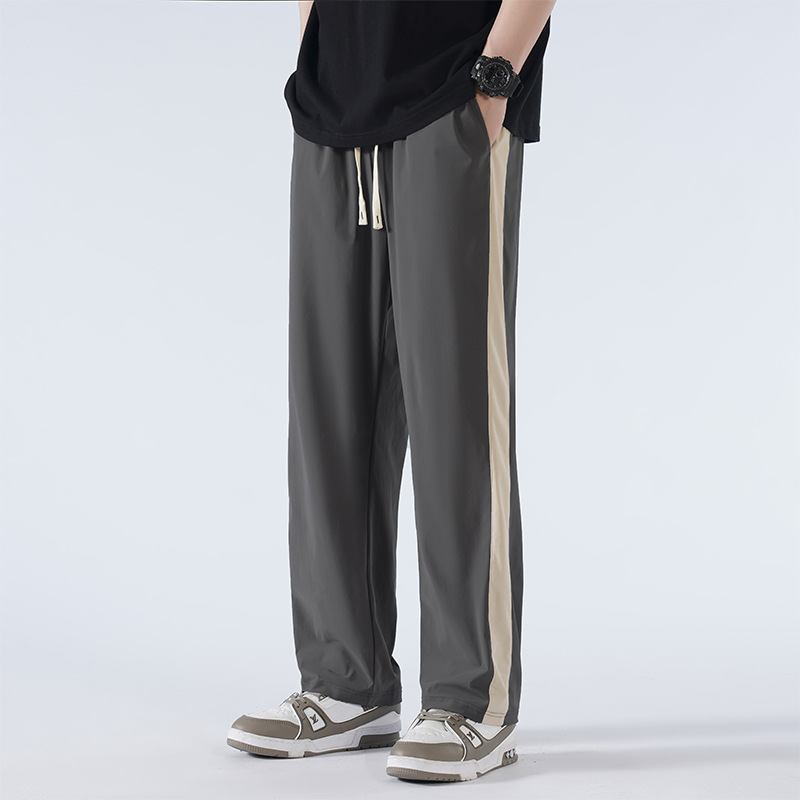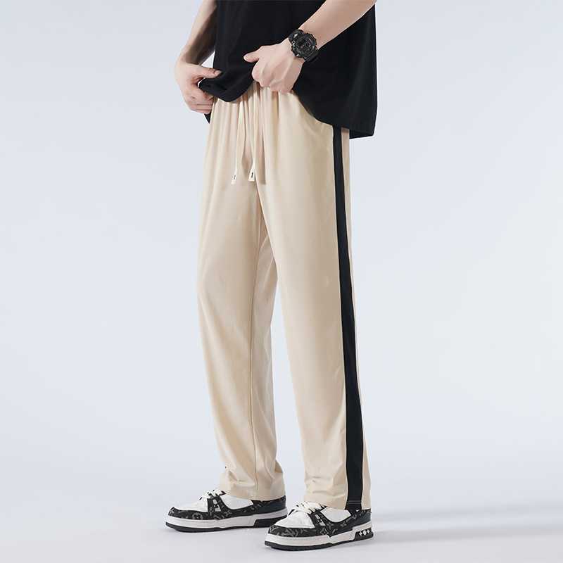 아이스 실크 캐주얼 바지 남성용 2023 여름 3 차원 허리 가장자리 스트레이트 팬츠 얇은 통기성 스포츠 발목 바지