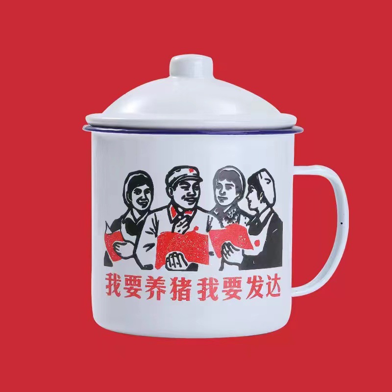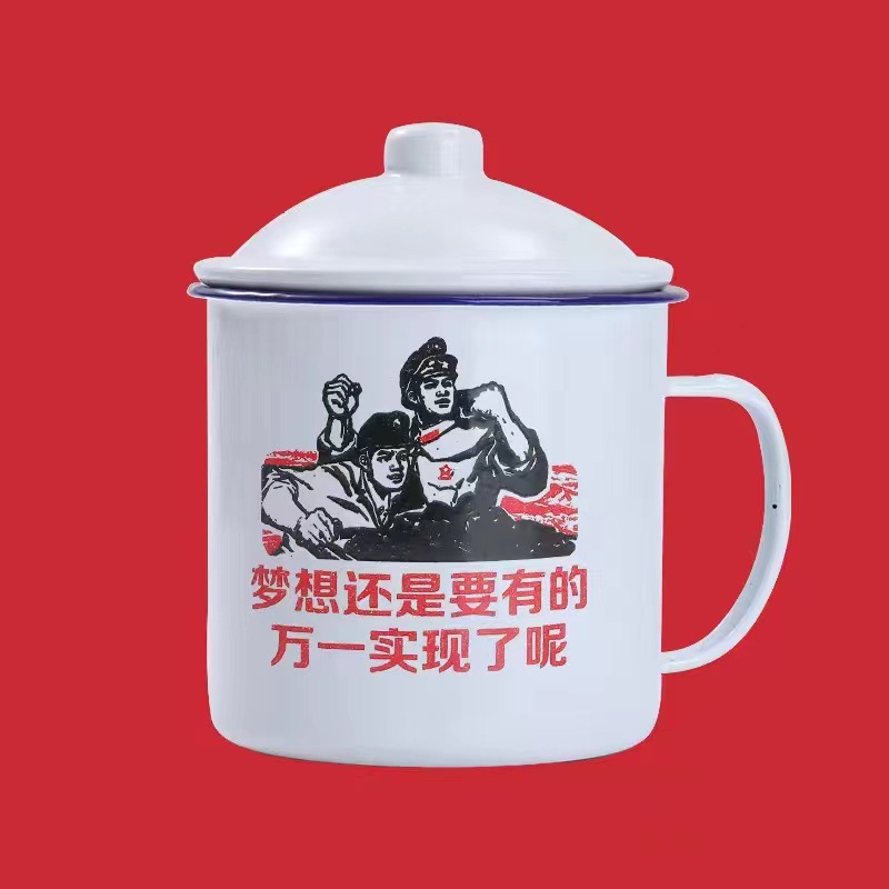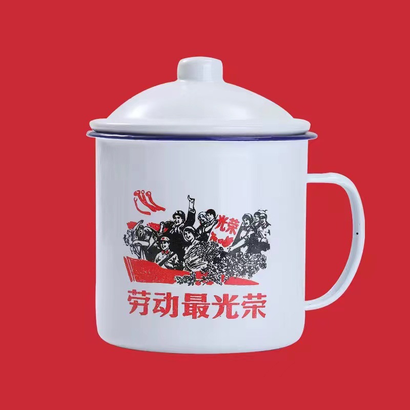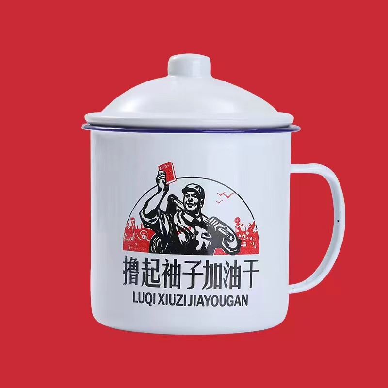 뚜껑이 있는 향수를 불러일으키는 이중 에나멜 두꺼운 에나멜 컵 차 항아리, 구직원 차 컵, 선택 가능한 패턴 인쇄 에나멜 머그스토어 가기