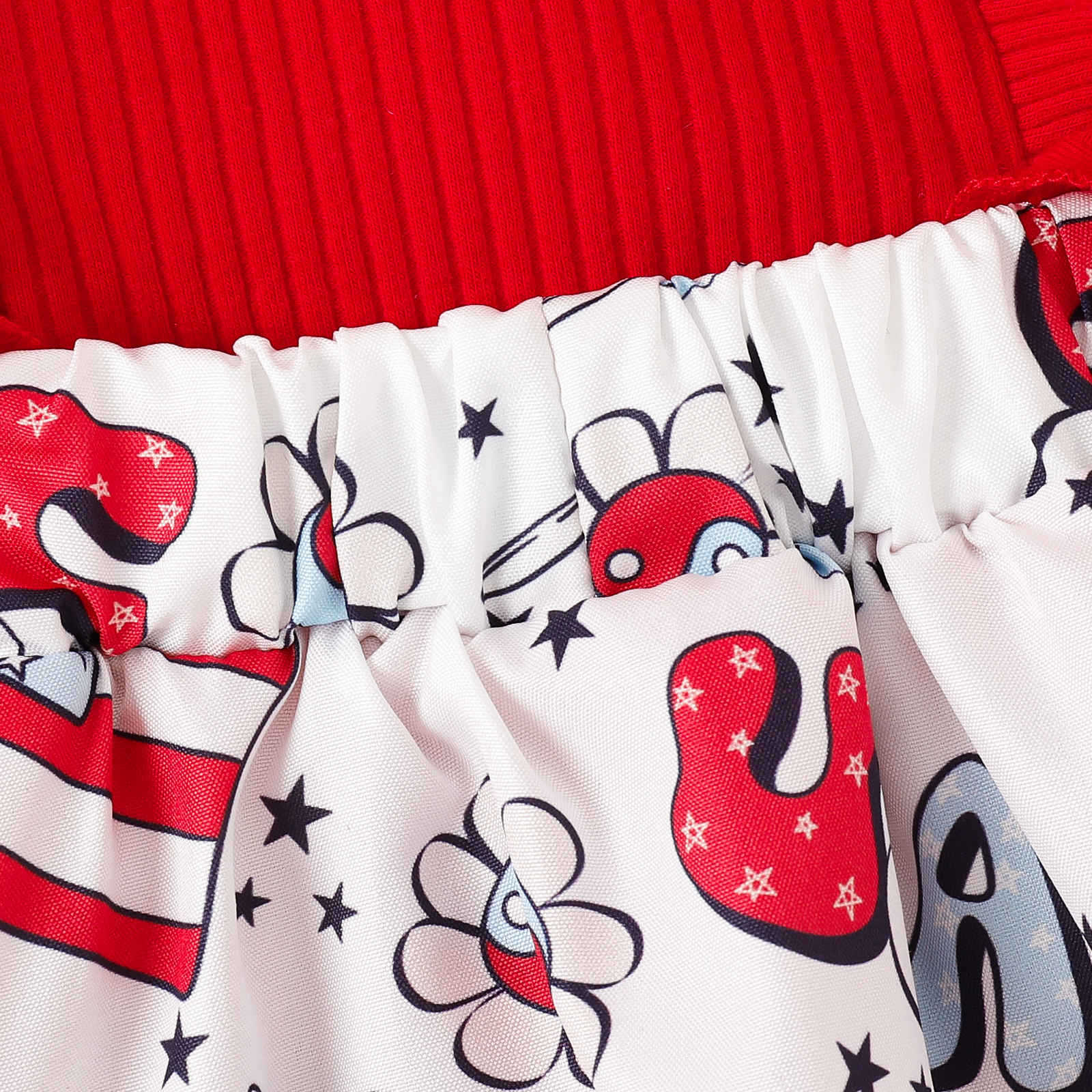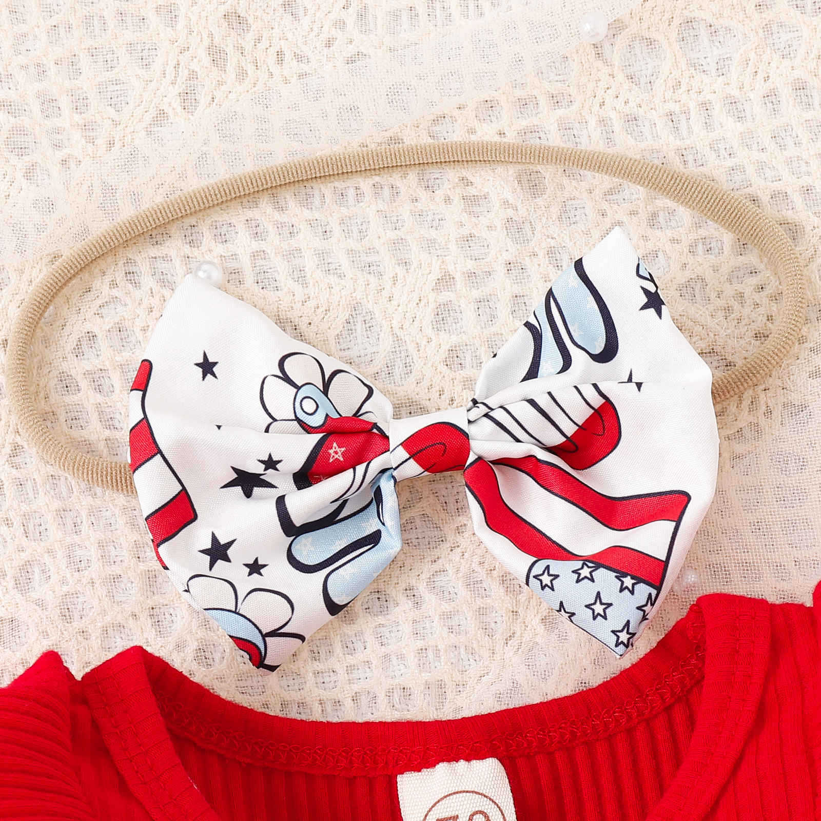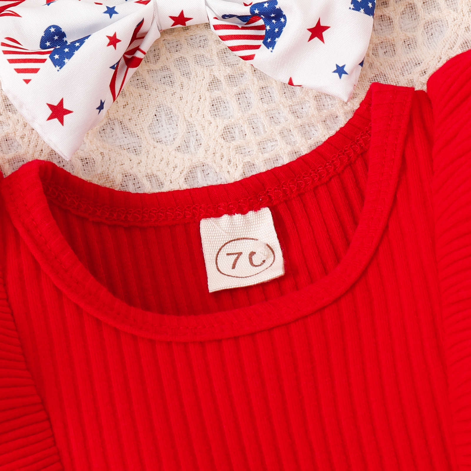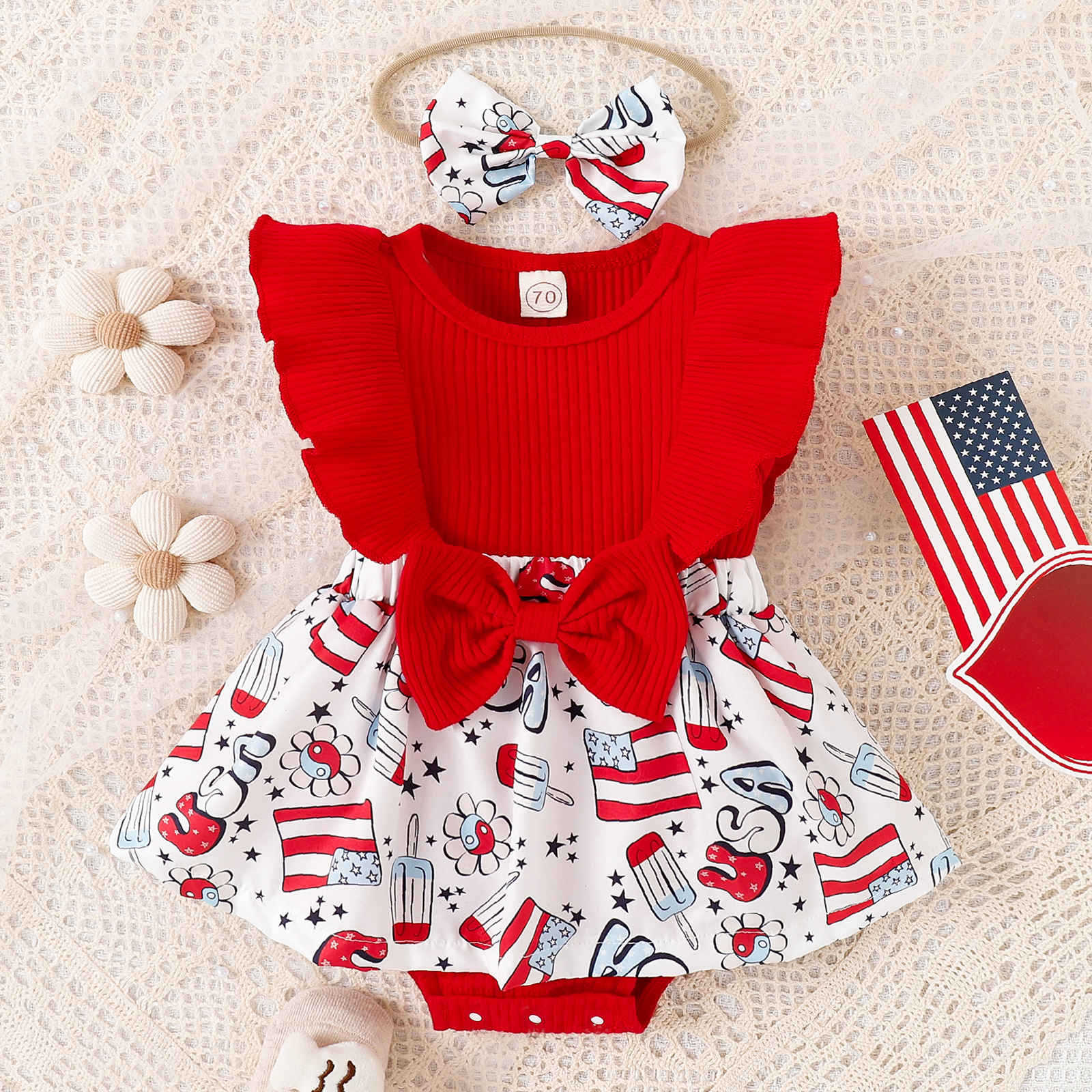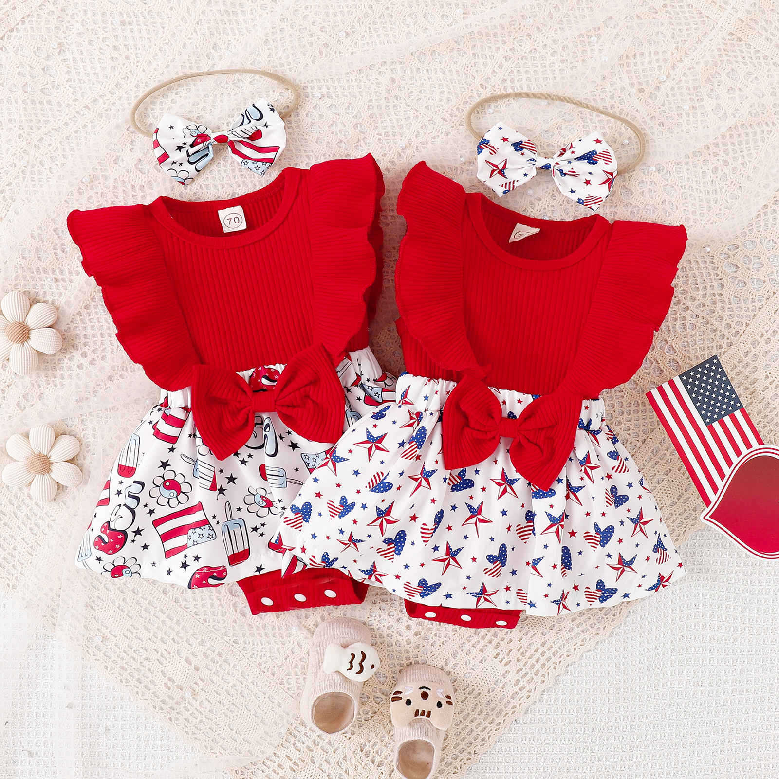 Baoxin 아동복 유럽과 미국 여성의 유아 독립 기념일 레이스 슬리브 만화 인쇄 귀여운 활 오픈 가랑이 옷