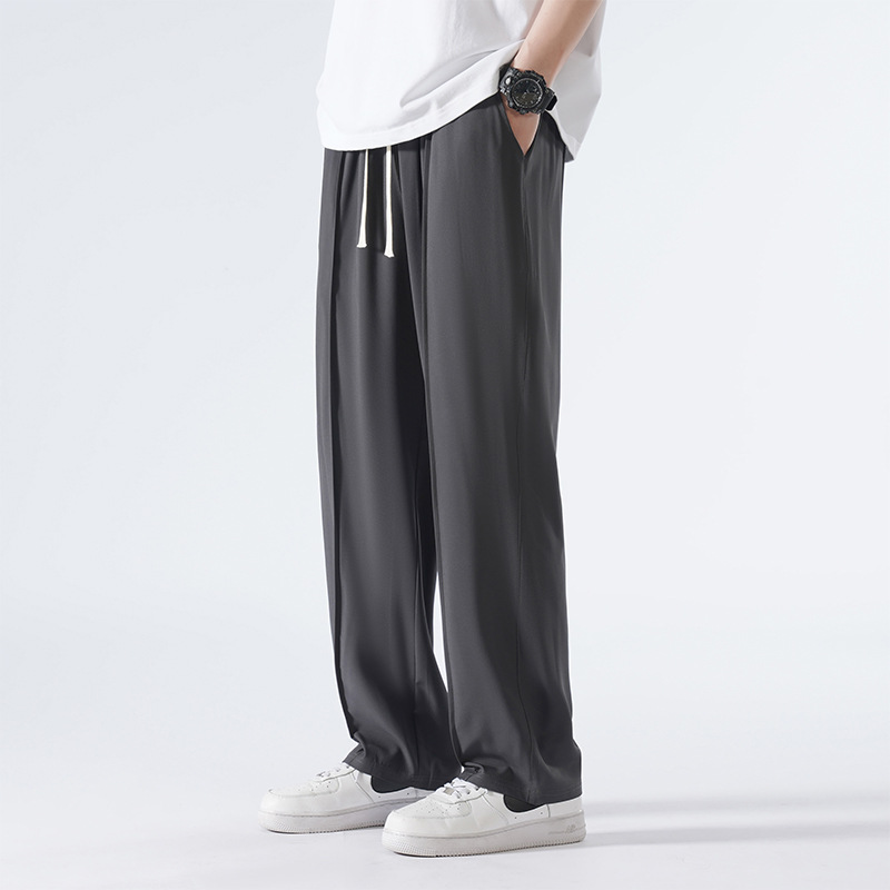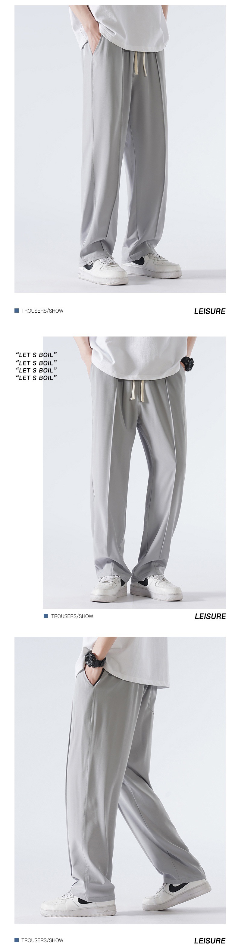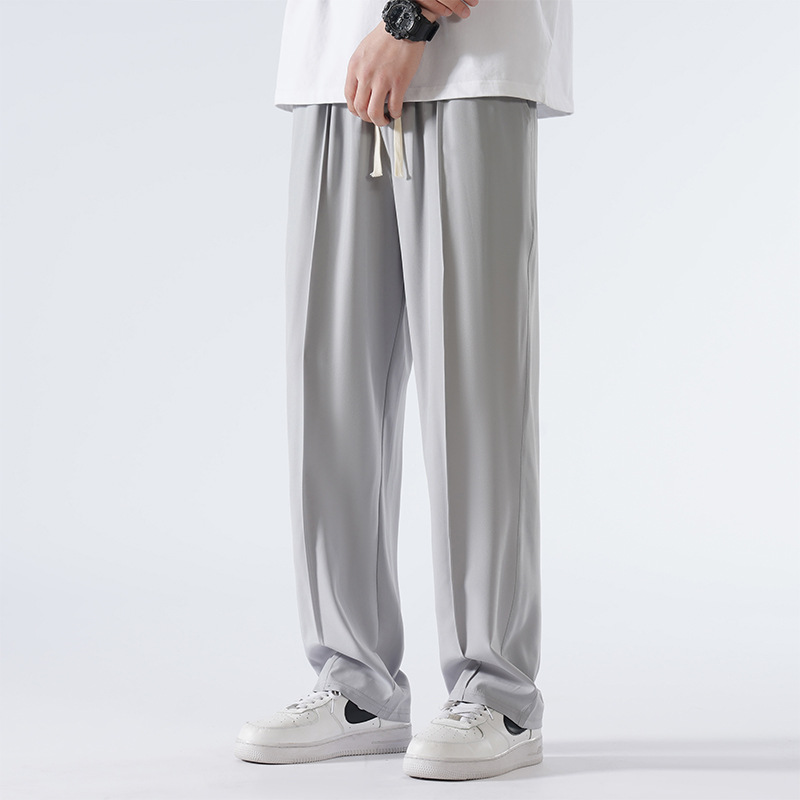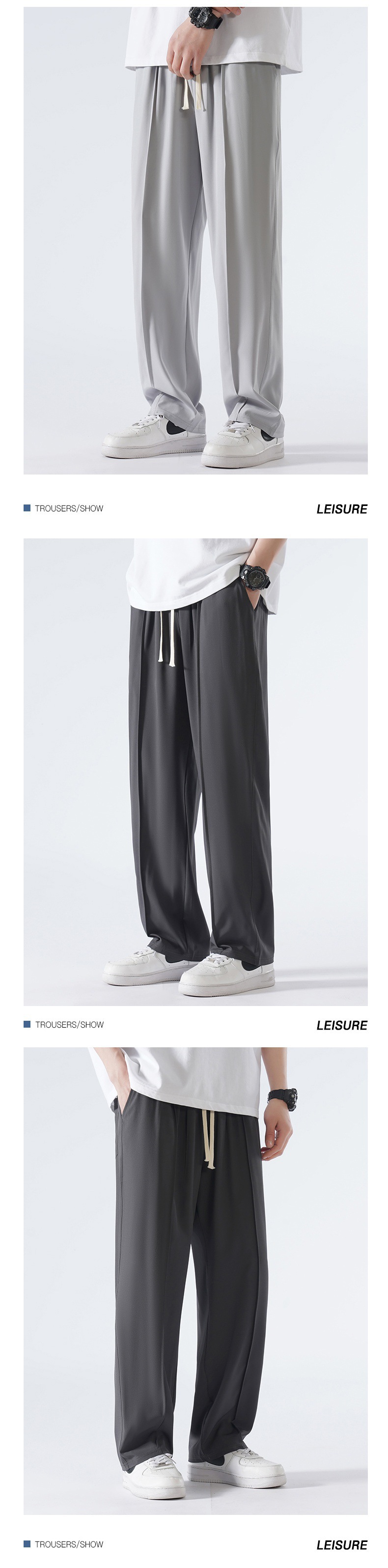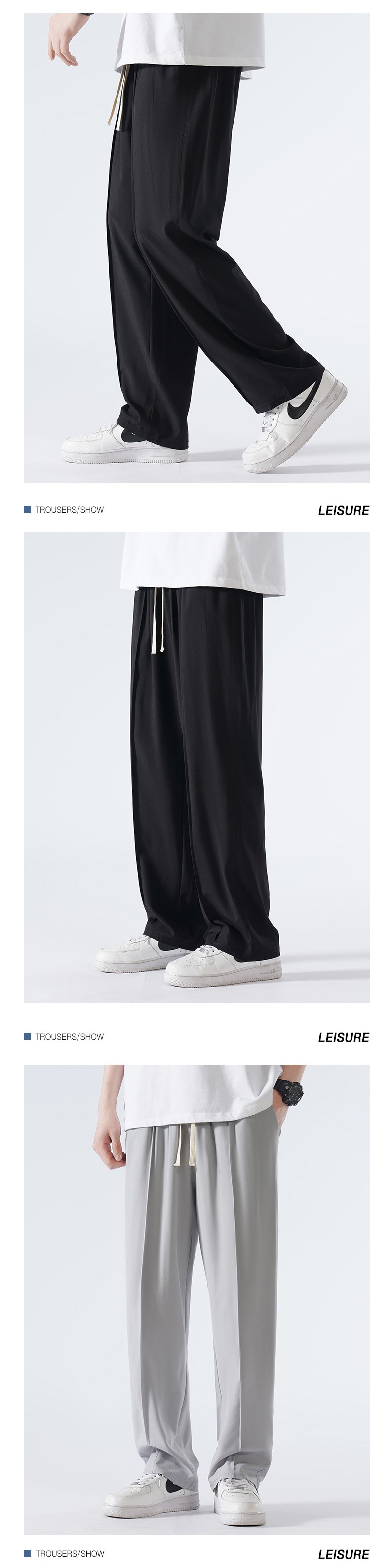 Dagging 아이스 실크 팬츠 남성용 모든 매치 솔리드 컬러 스몰 팬츠 2023 여름 얇은 느슨한 스트레이트 캐주얼 팬츠 스포츠 쿨