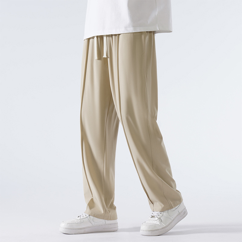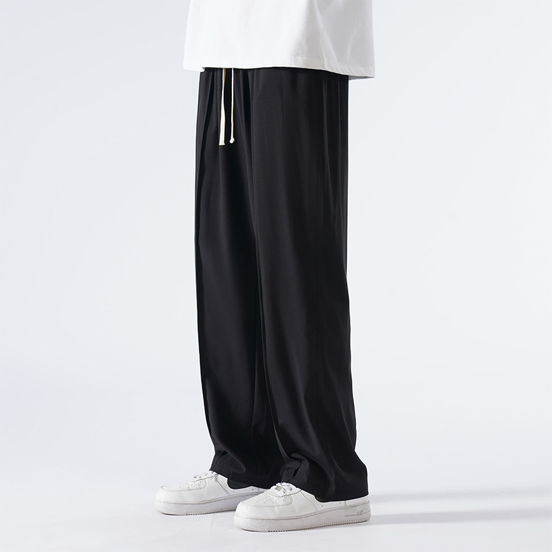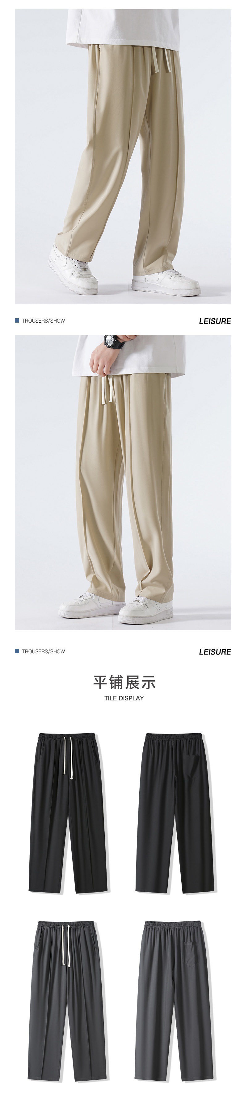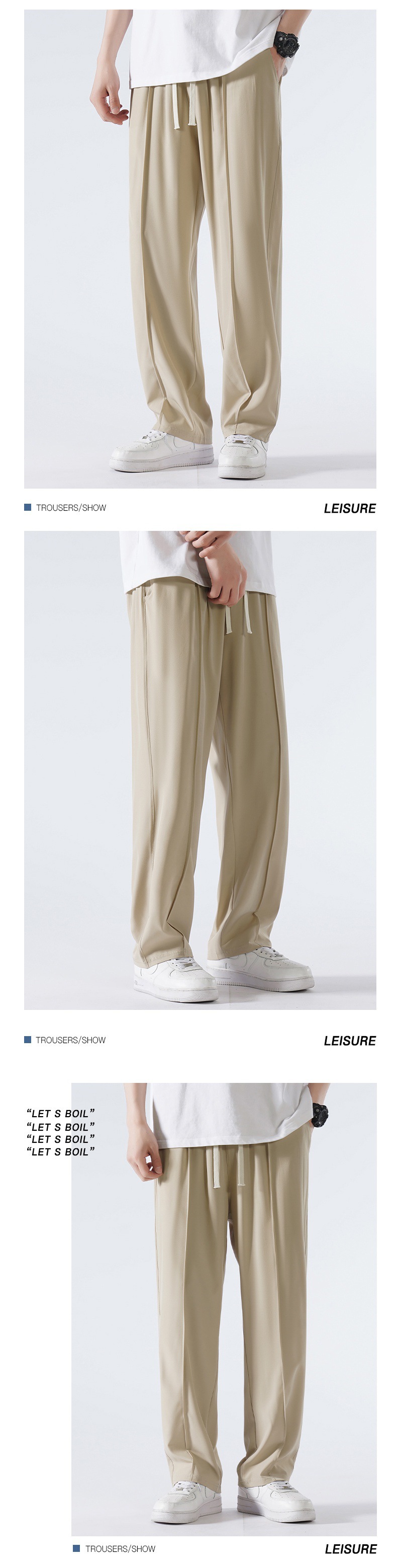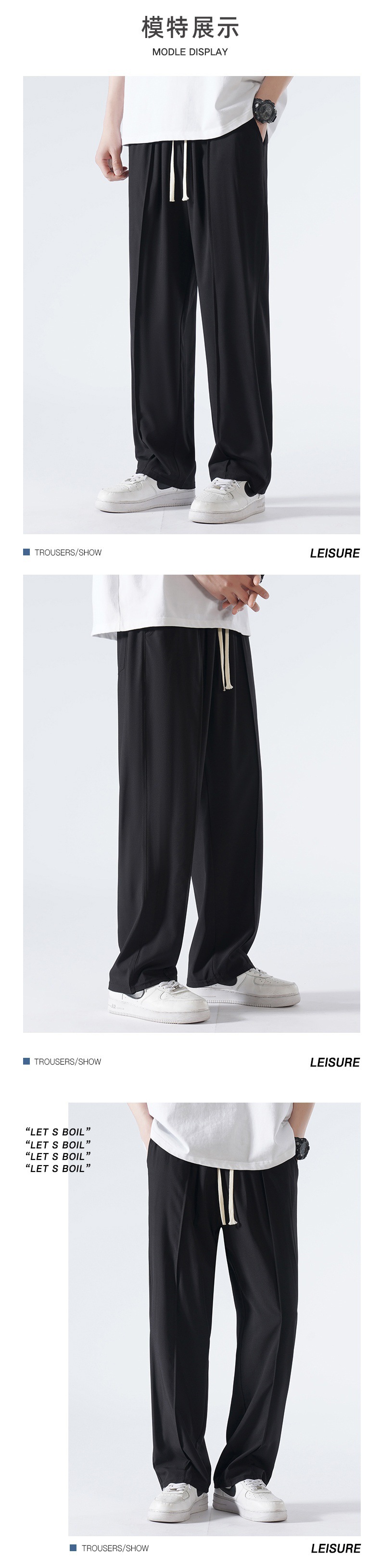 Dagging 아이스 실크 팬츠 남성용 모든 매치 솔리드 컬러 스몰 팬츠 2023 여름 얇은 느슨한 스트레이트 캐주얼 팬츠 스포츠 쿨