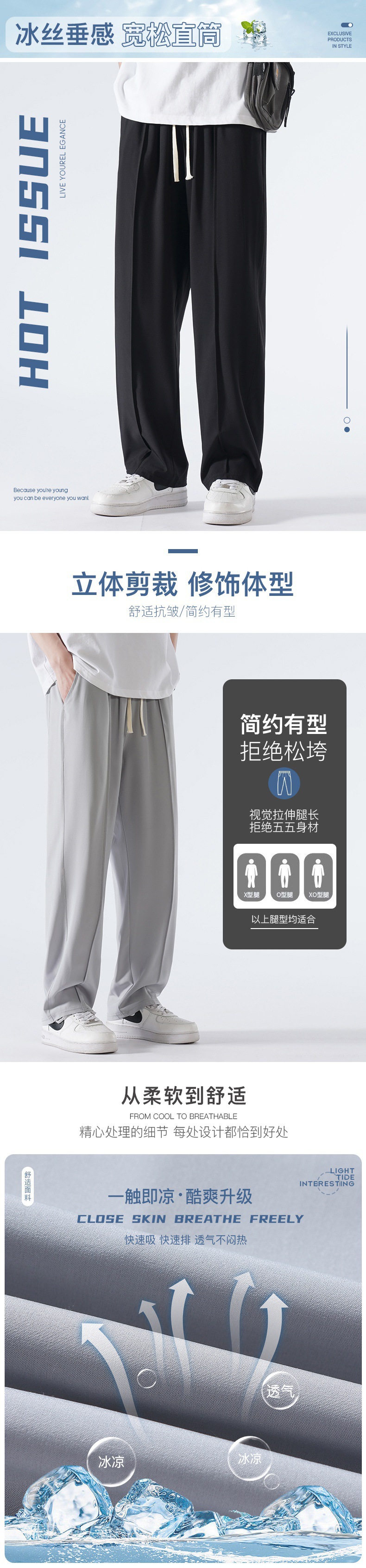 Dagging 아이스 실크 팬츠 남성용 모든 매치 솔리드 컬러 스몰 팬츠 2023 여름 얇은 느슨한 스트레이트 캐주얼 팬츠 스포츠 쿨스토어 가기
