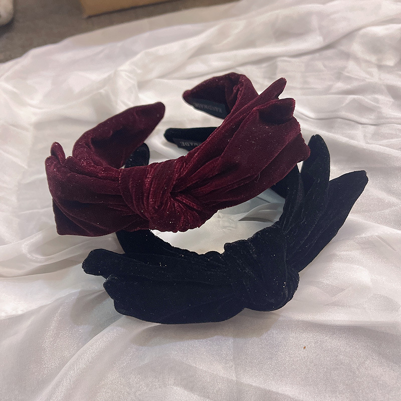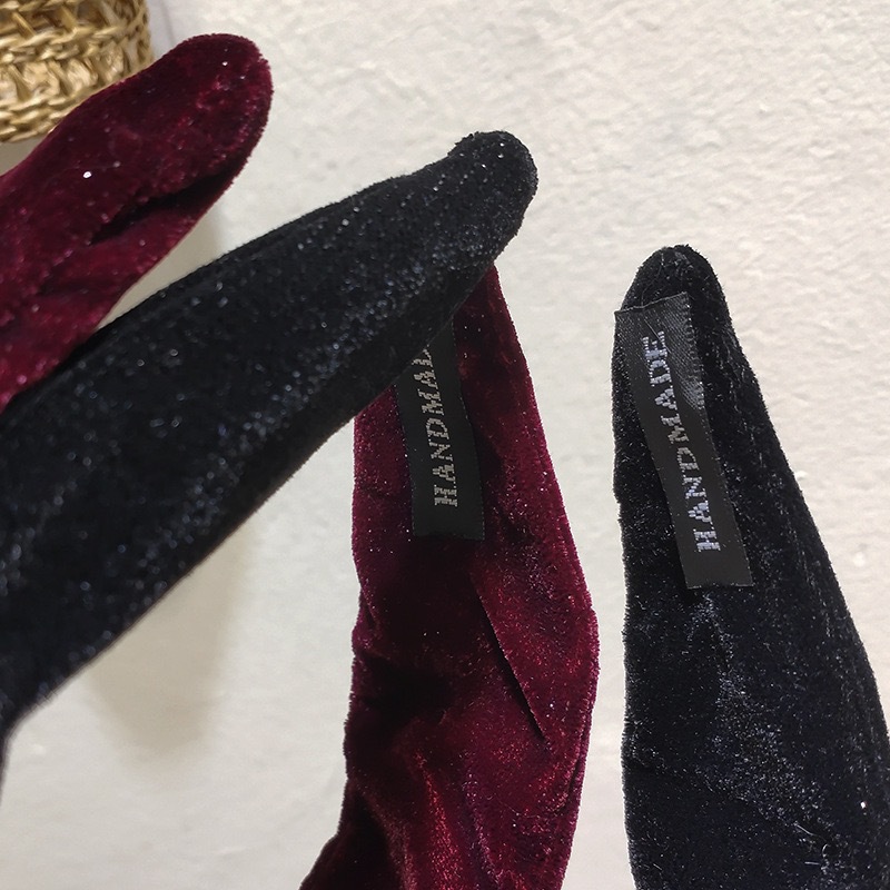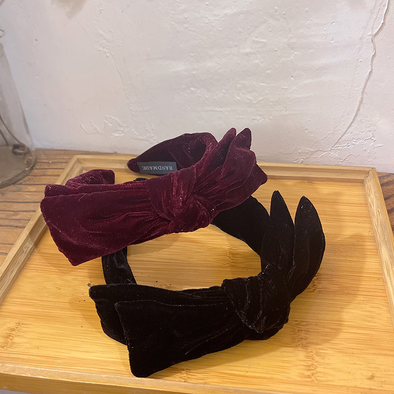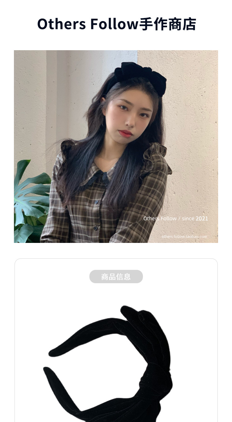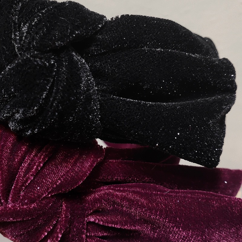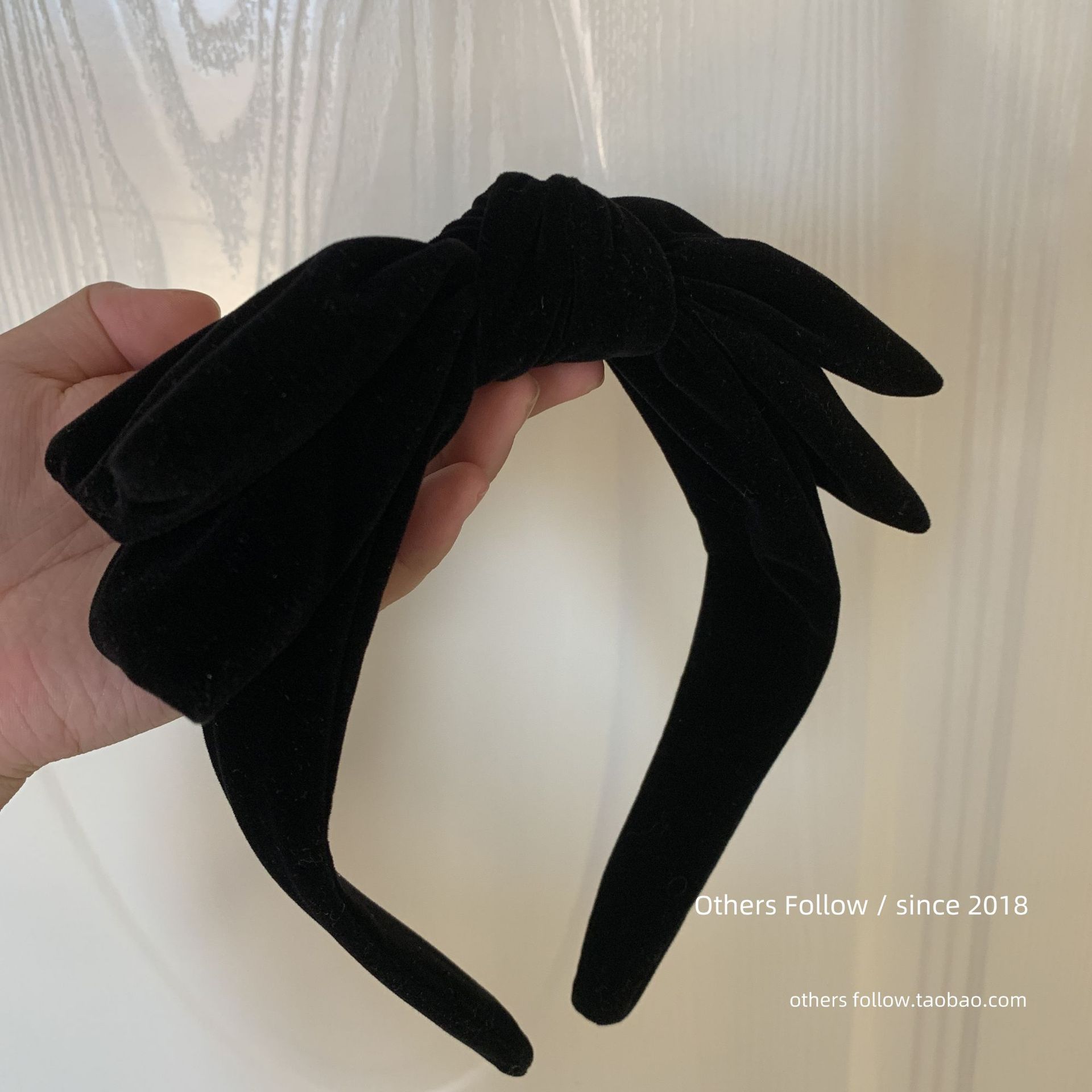 [팔로우] 벨벳 하이 두개골 탑 블랙 보우 헤어밴드 여성용 레트로 와이드 엣지와 한국 이스트 게이트