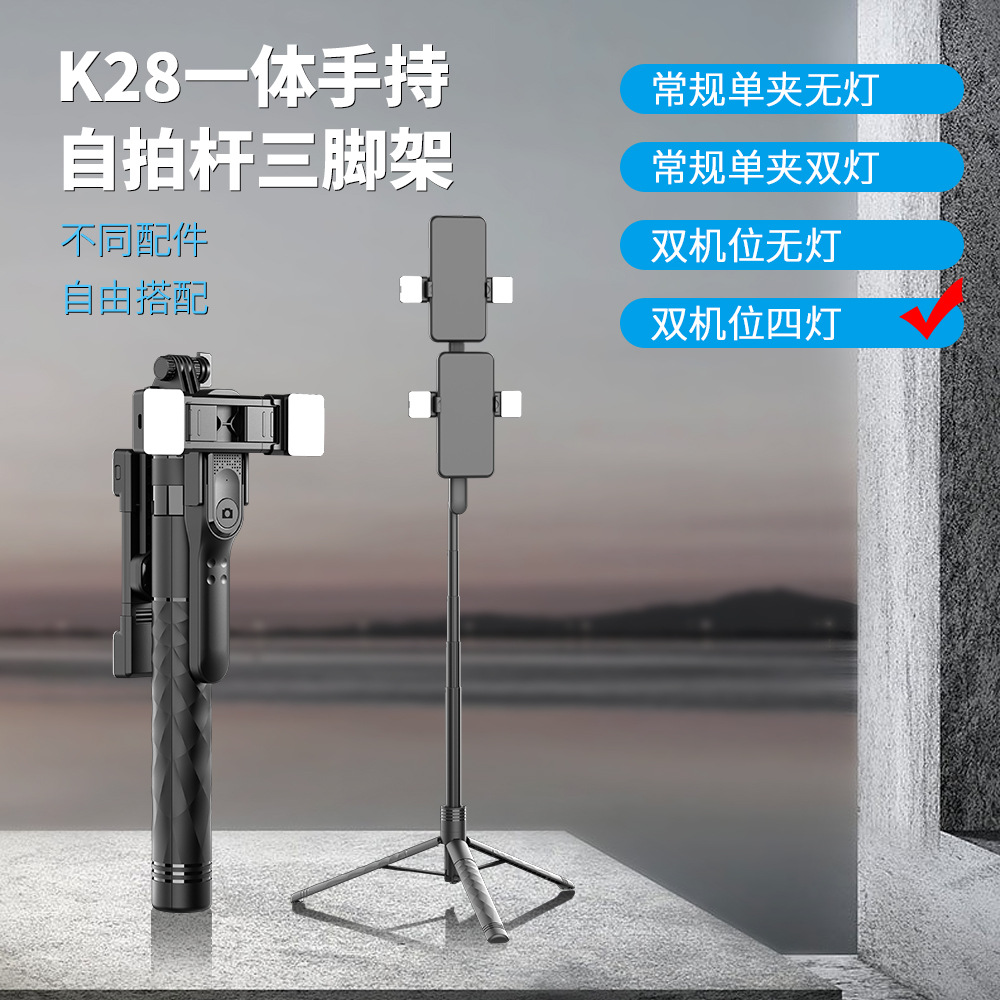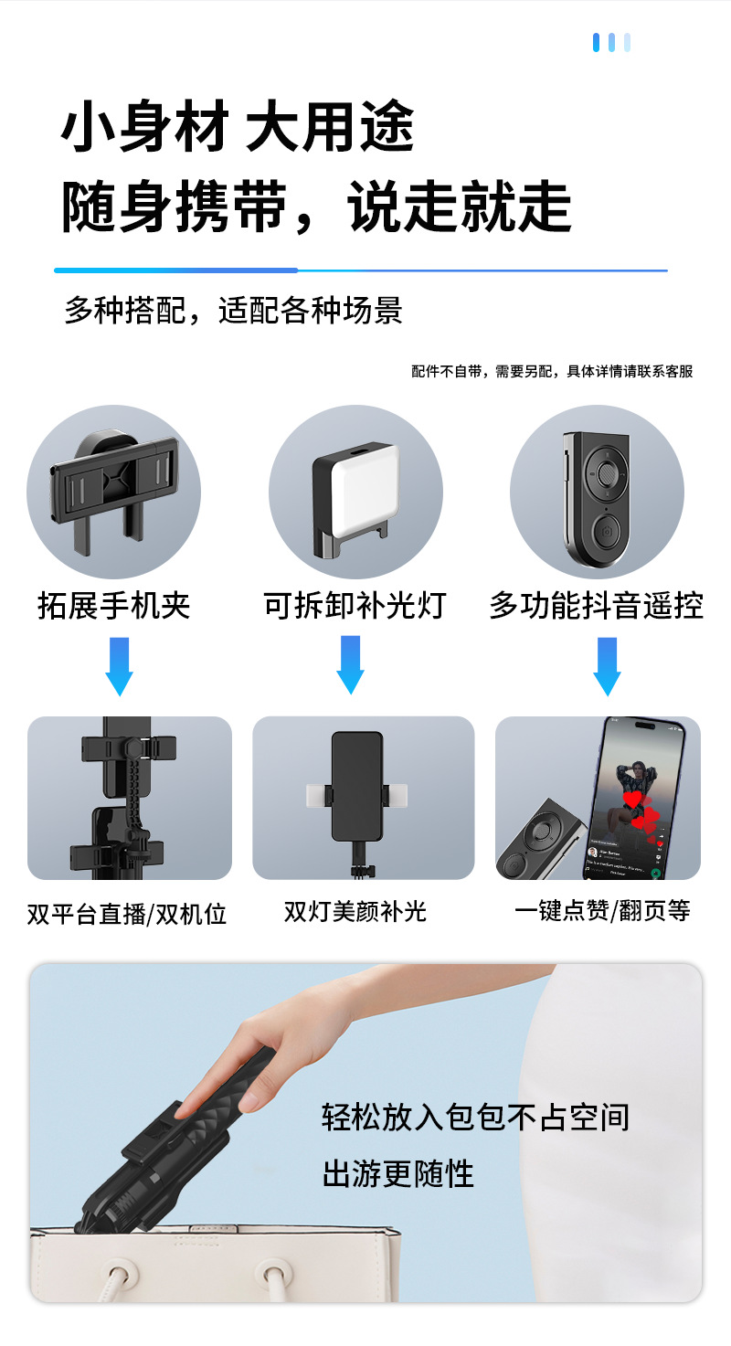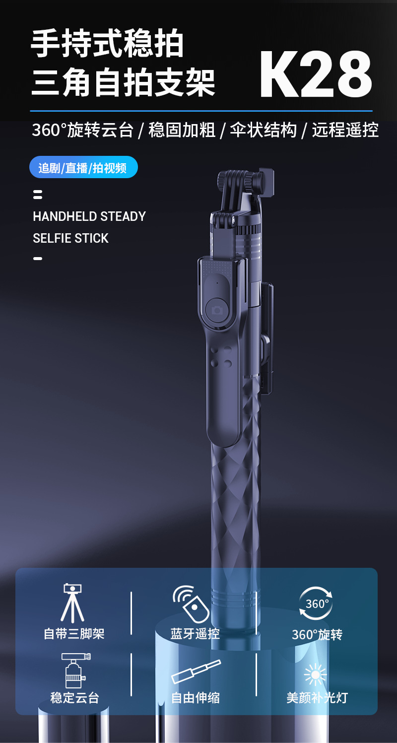 새로운 블루투스 셀카 스틱 1.7m 범용 삼각대 셀카 스틱 안정적인 흔들림 방지 라이브 라이트 필 라이트 휴대 전화 홀더