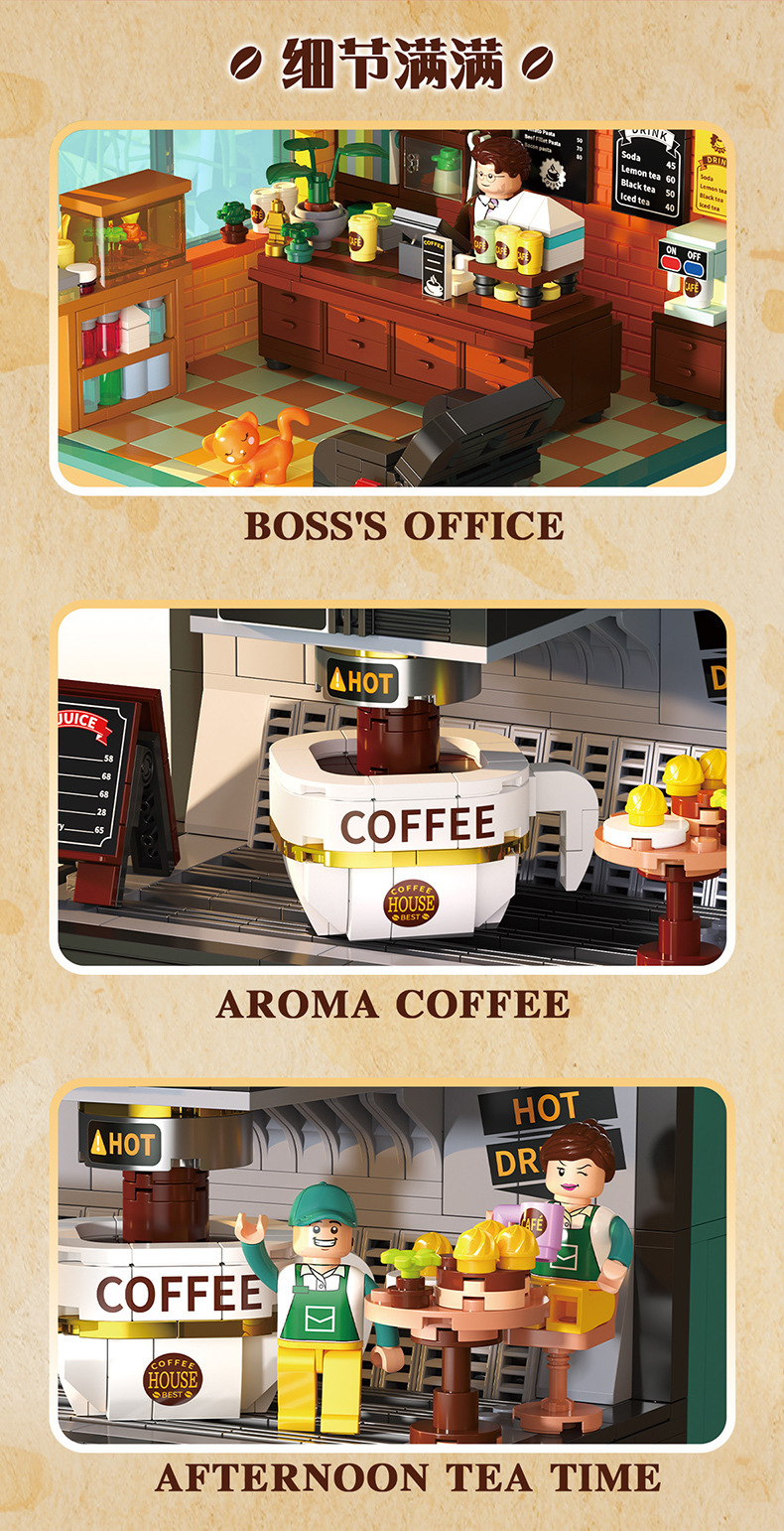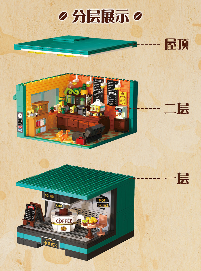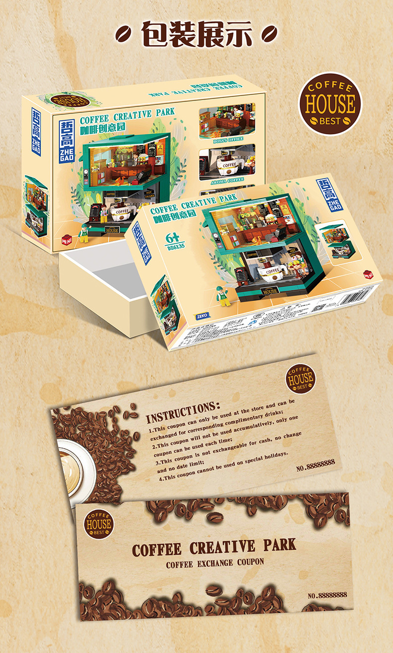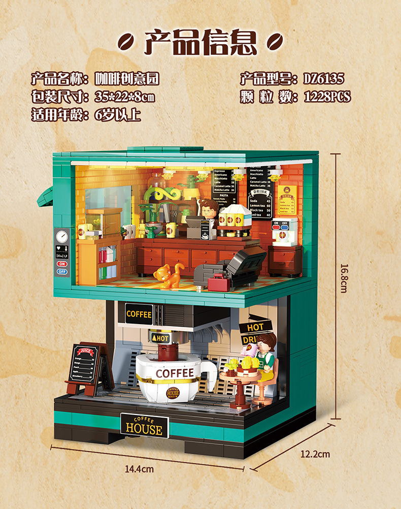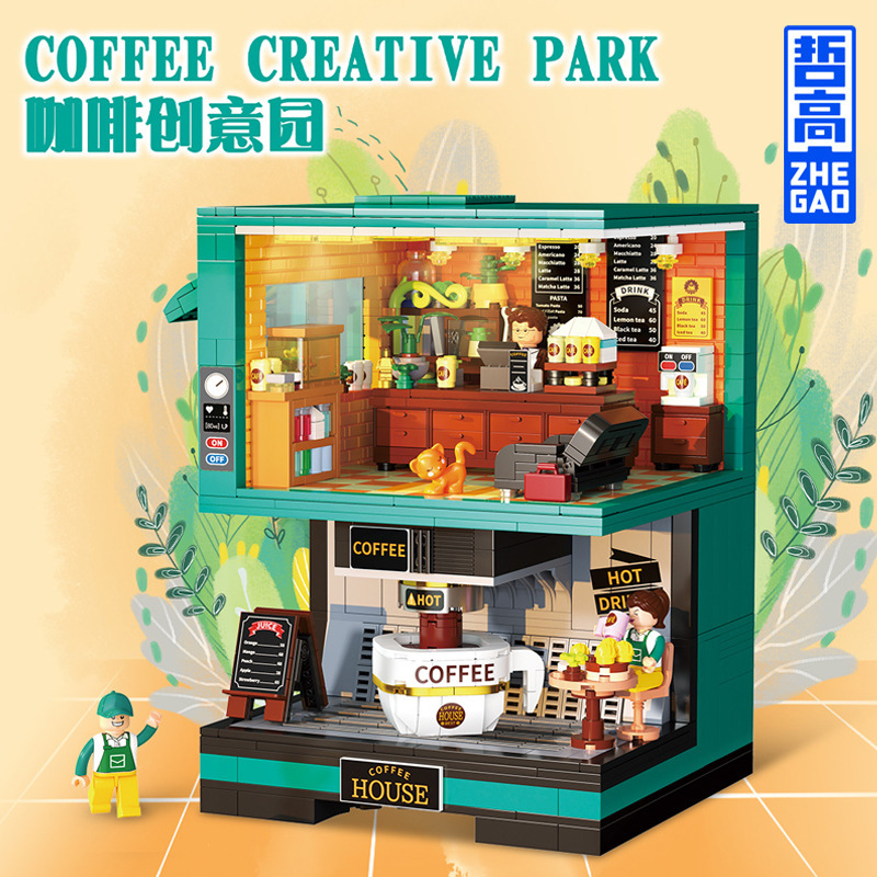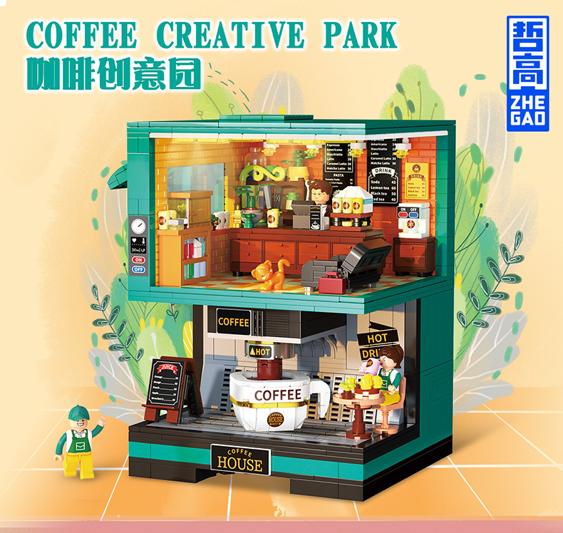 Zhegao DZ6135 커피 크리에이티브 파크 DZ6017 더블 커피 머신 조립 빌딩 블록 장식품 소녀 장난감 선물스토어 가기