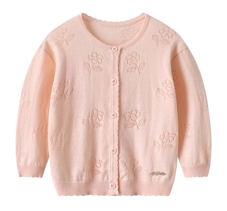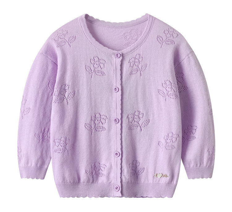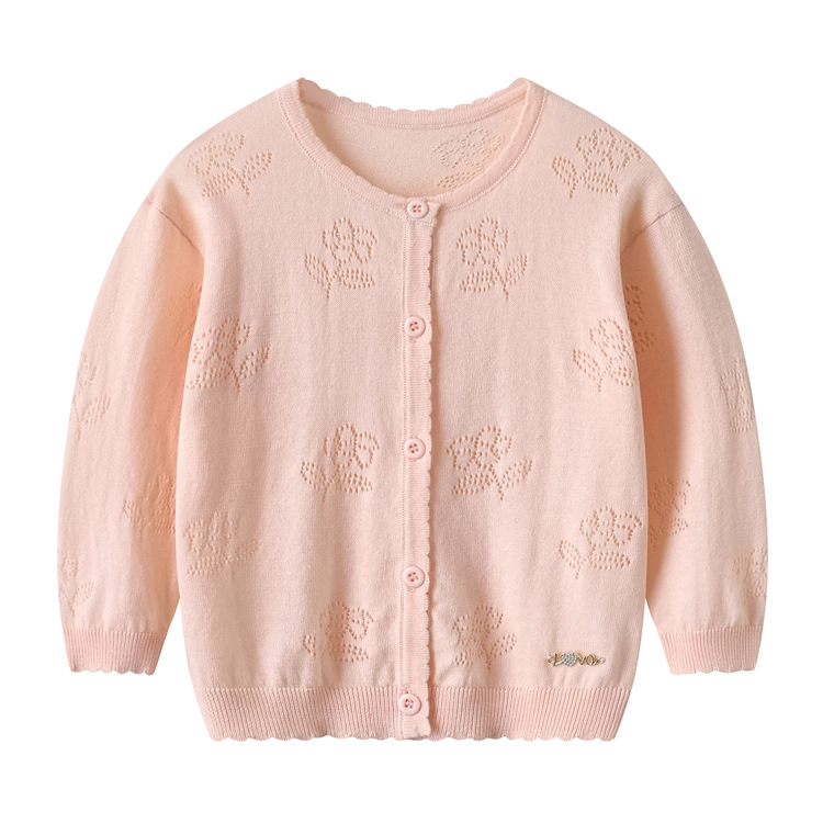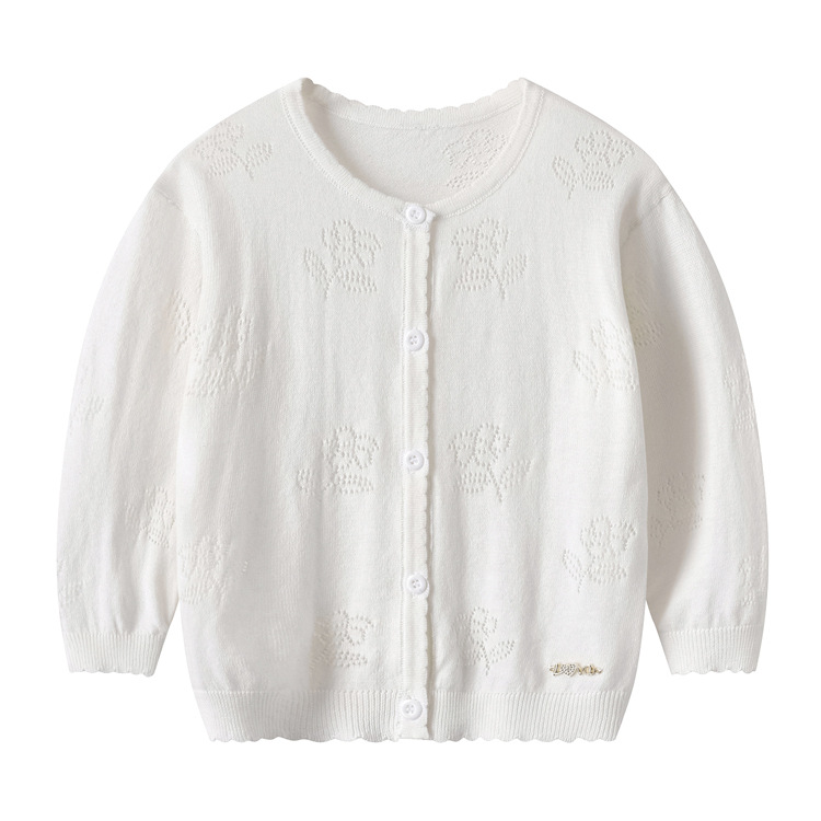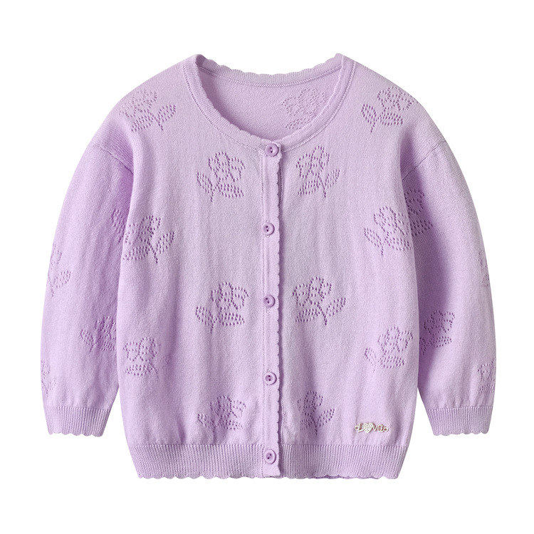 2024 년 여름 새 여아 얇은 태양 보호 의류 어린이 아기 에어컨 셔츠 재킷 어린이 순면 니트 카디건