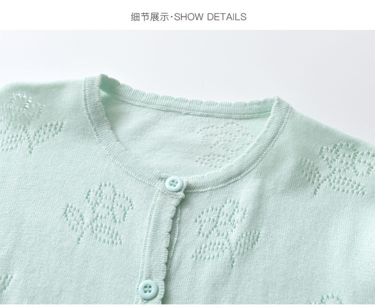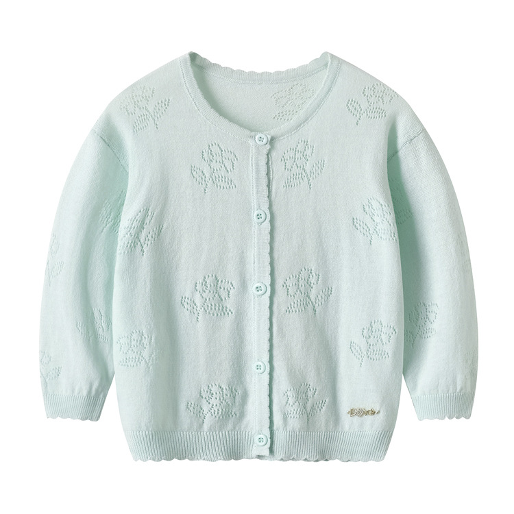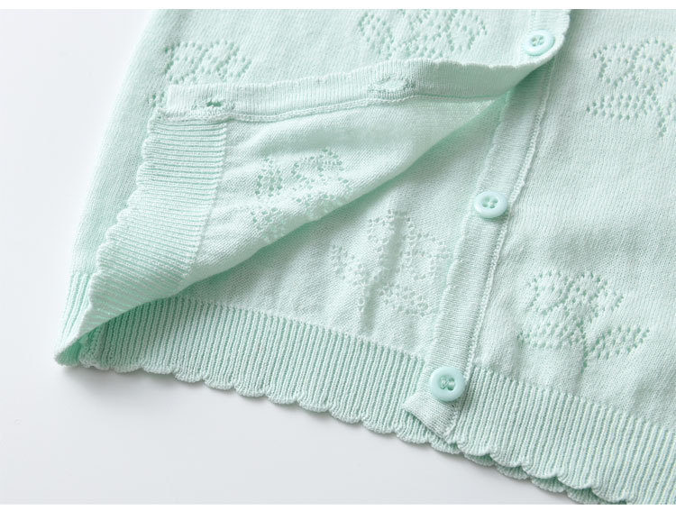 2024 년 여름 새 여아 얇은 태양 보호 의류 어린이 아기 에어컨 셔츠 재킷 어린이 순면 니트 카디건스토어 가기