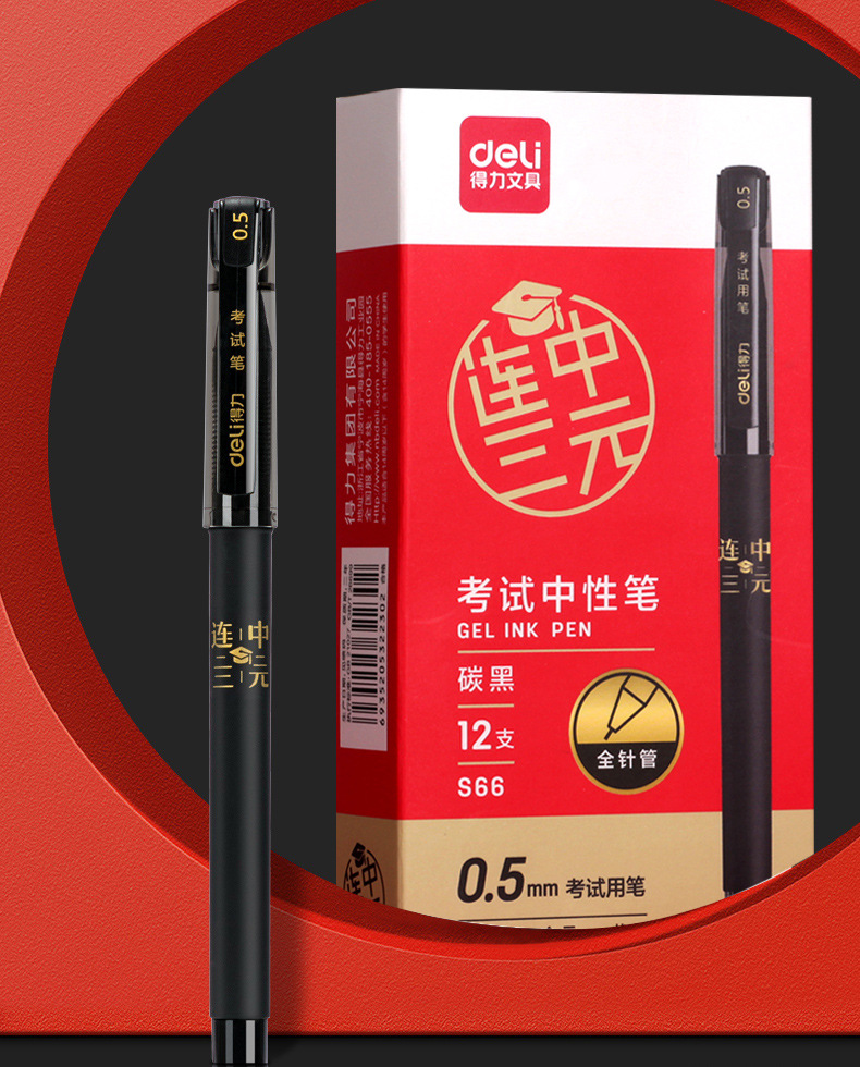델리 s66 3 위안 테스트 젤 펜 속건 카본 블랙 잉크 풀 니들 튜브 풀 캡 0.5mm 블랙 만년필