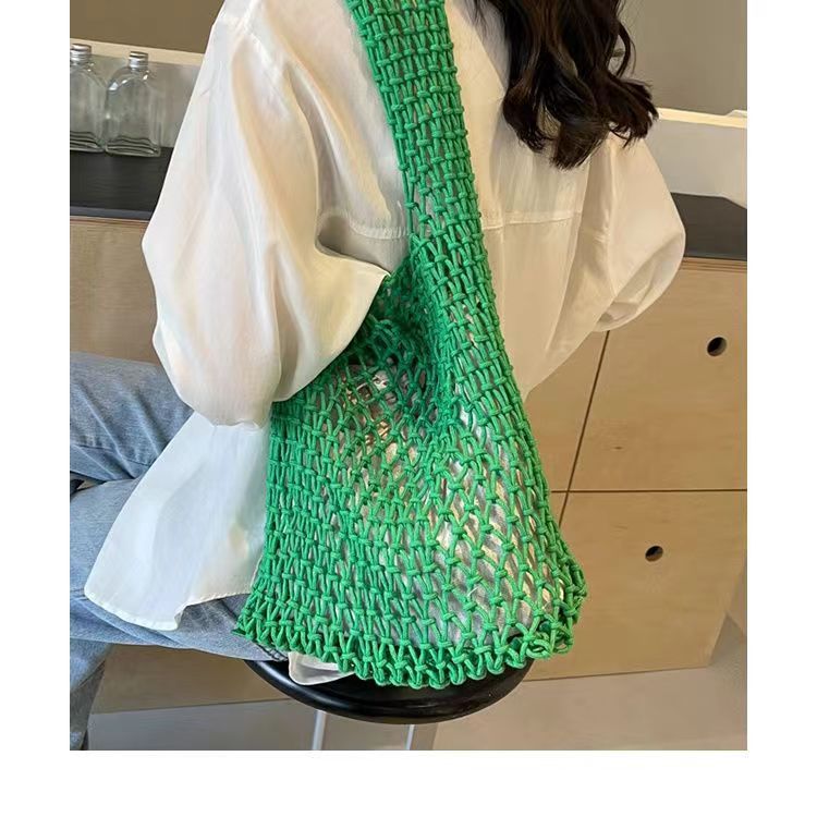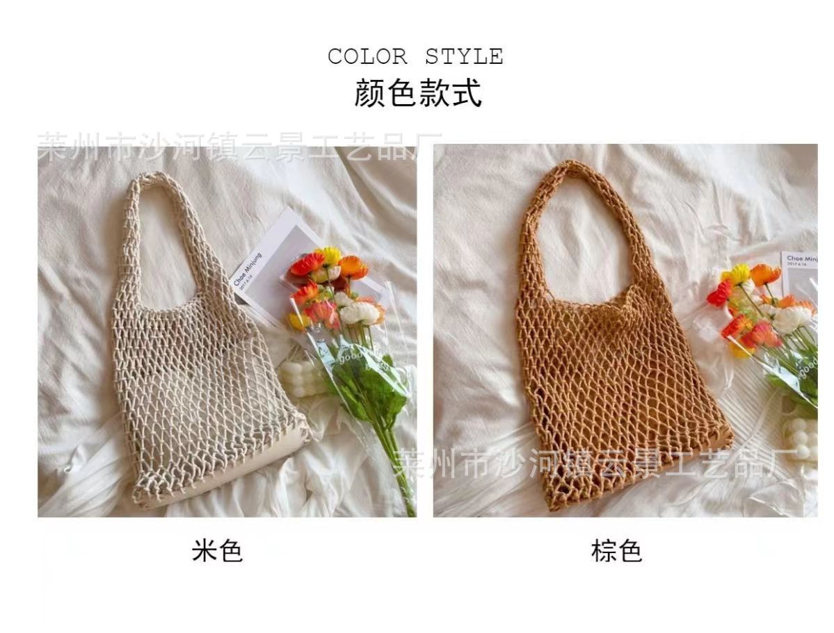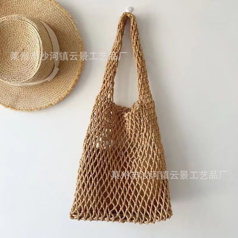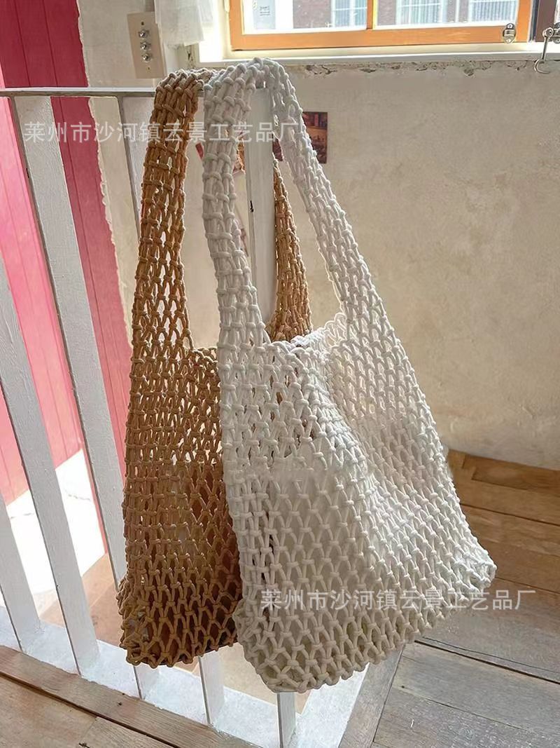새로운 순수 수제 목가적 인 스타일 프랑스 밀짚 가방 중공 메쉬 포켓 짠 가방 해변 해변 가방 레저스토어 가기