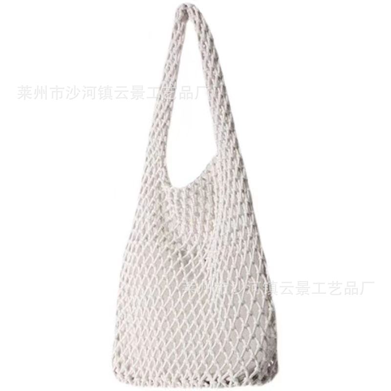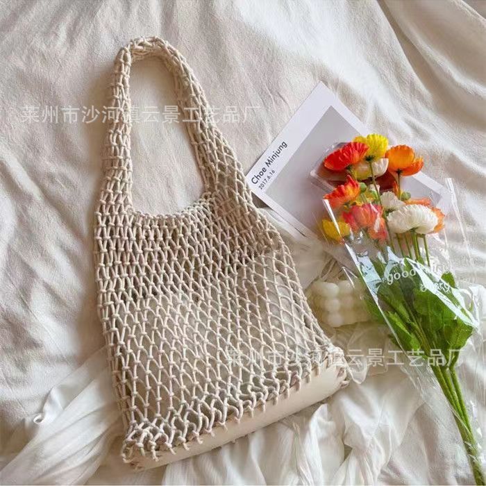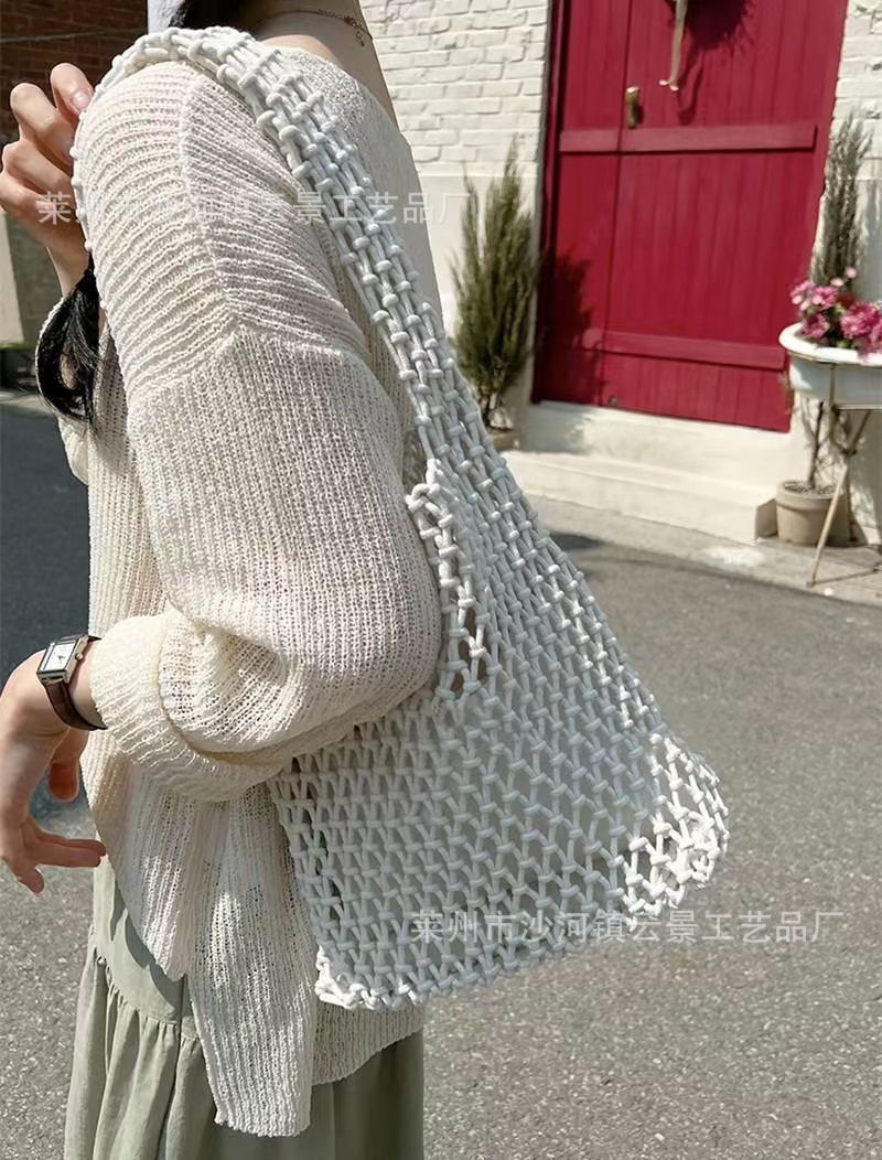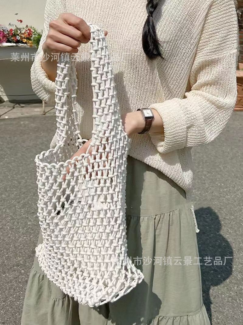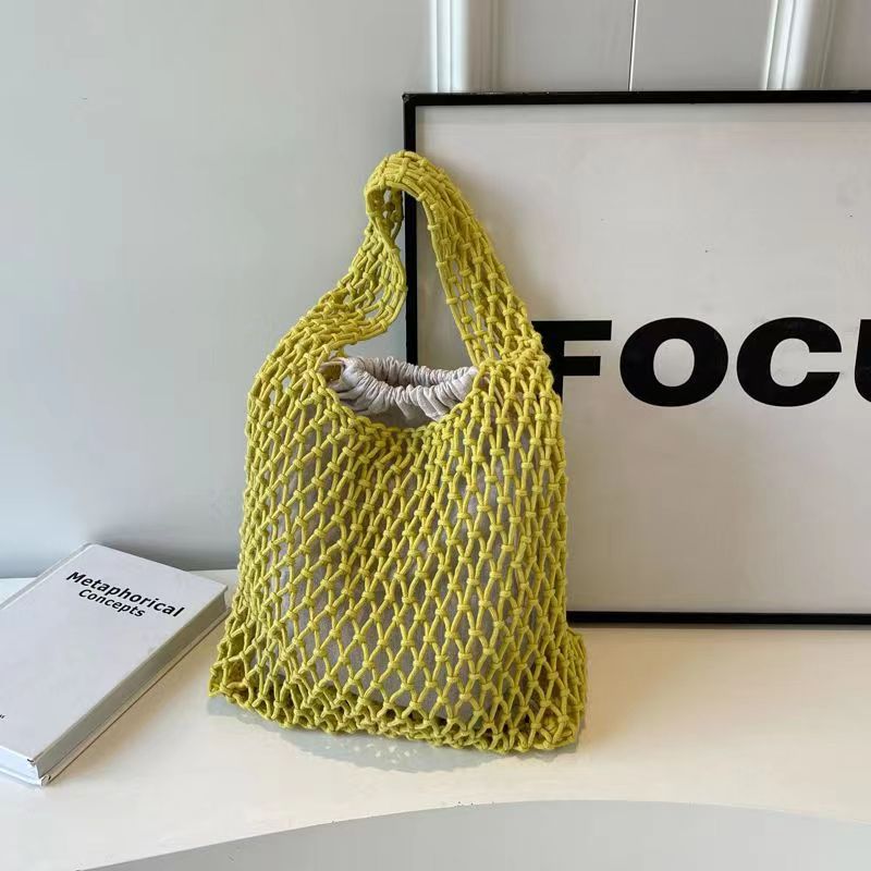 새로운 순수 수제 목가적 인 스타일 프랑스 밀짚 가방 중공 메쉬 포켓 짠 가방 해변 해변 가방 레저스토어 가기