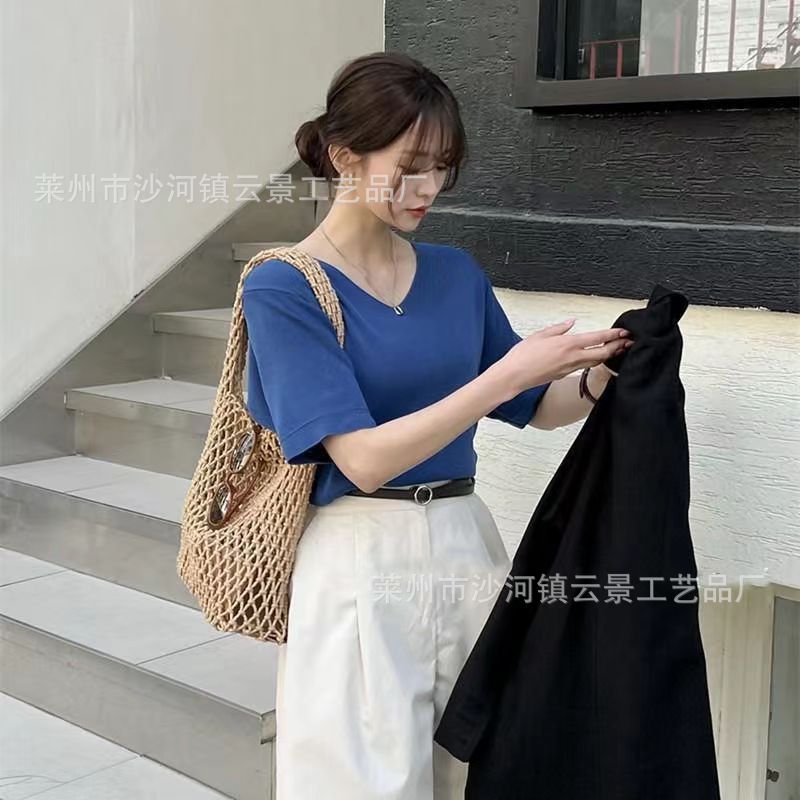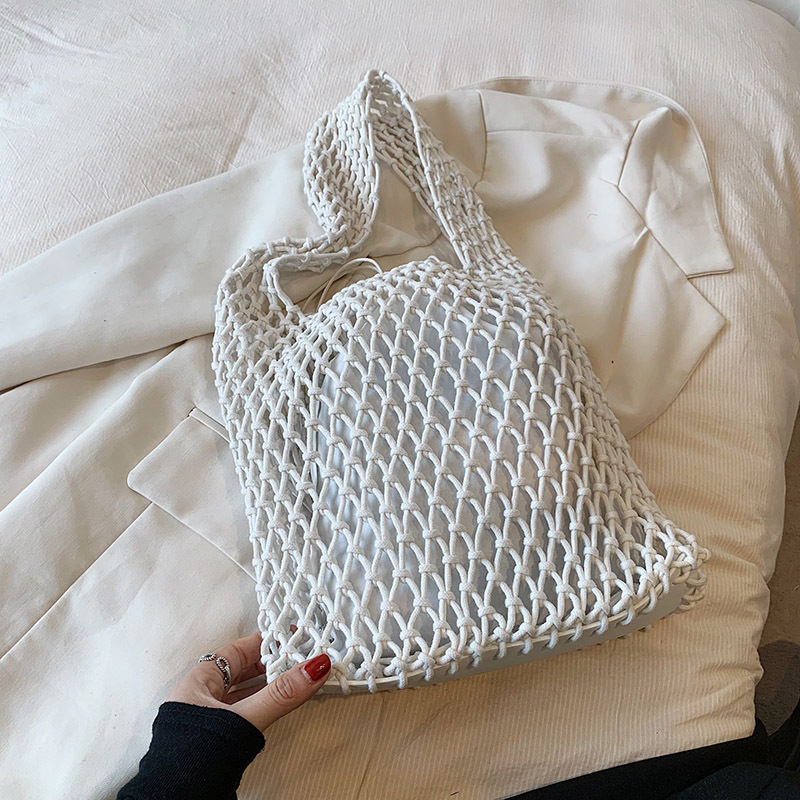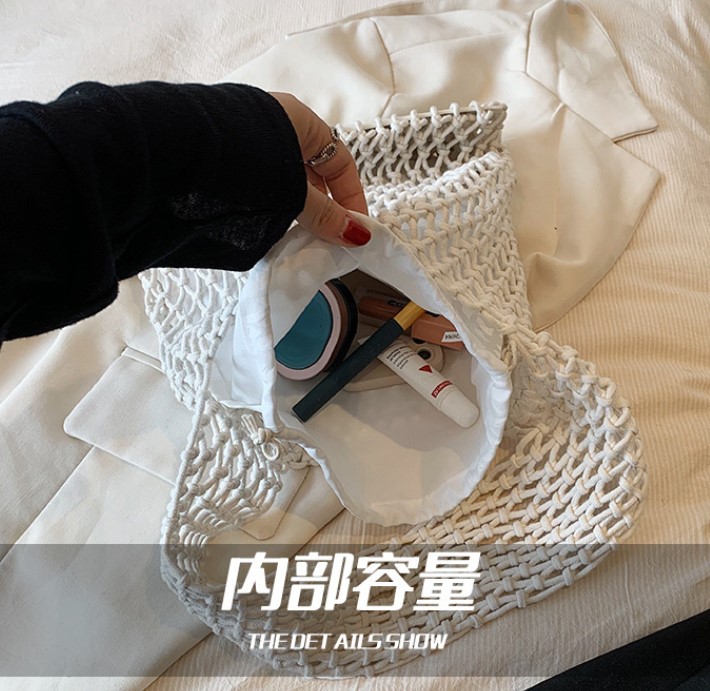 새로운 순수 수제 목가적 인 스타일 프랑스 밀짚 가방 중공 메쉬 포켓 짠 가방 해변 해변 가방 레저