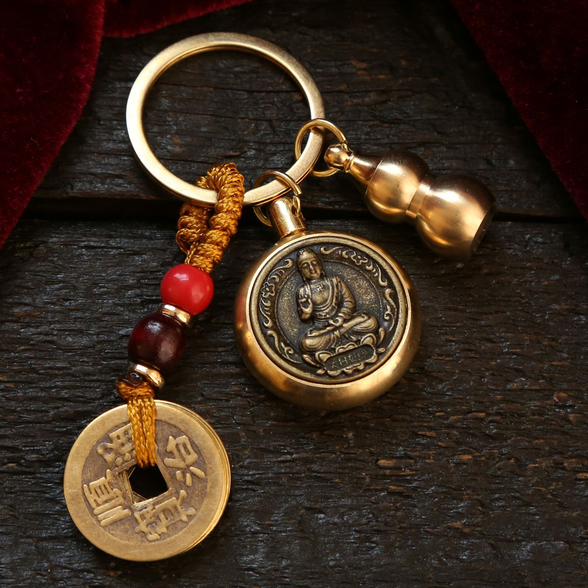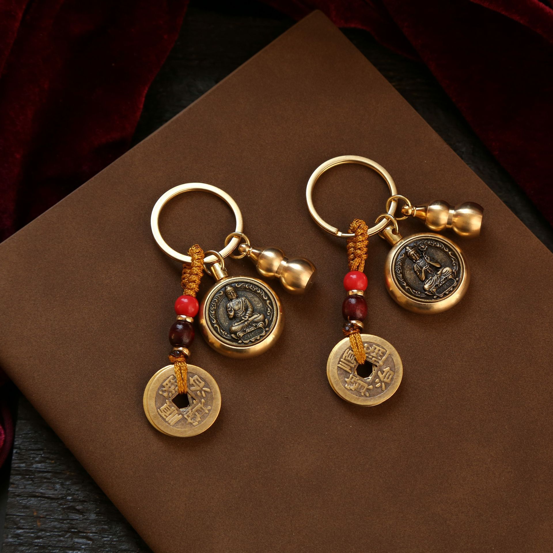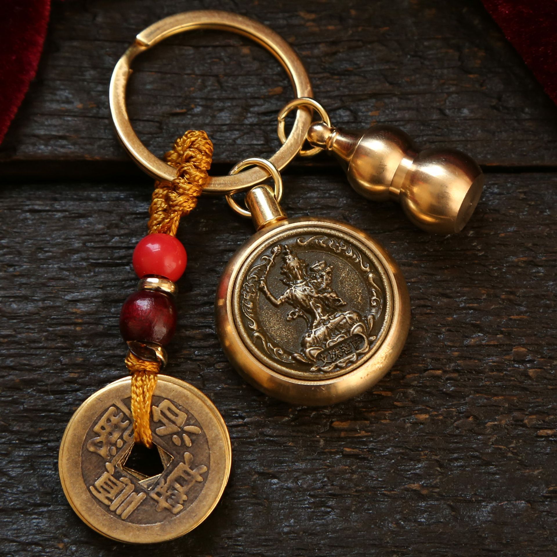 행운의 보물로 황동 회전 중국 조디악 노란 밧줄의 여덟 수호자 다섯 황제 돈 펜던트 수제 밧줄 펜던트