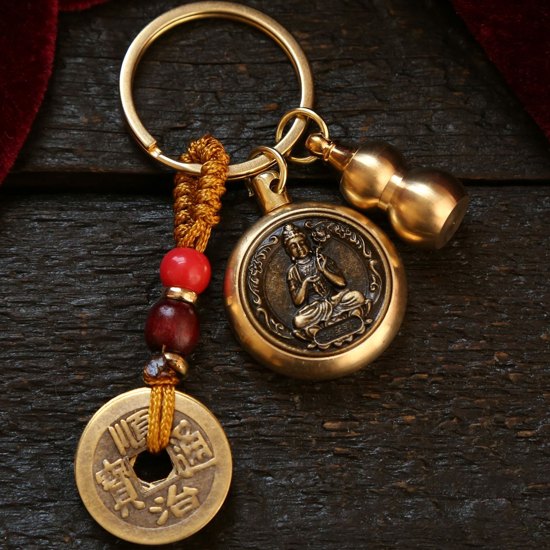 행운의 보물로 황동 회전 중국 조디악 노란 밧줄의 여덟 수호자 다섯 황제 돈 펜던트 수제 밧줄 펜던트스토어 가기