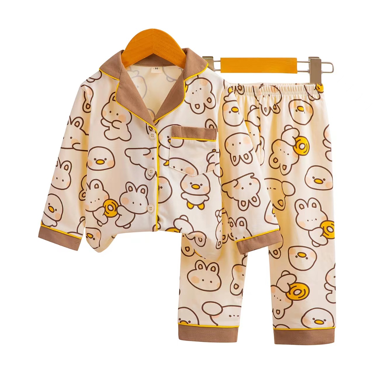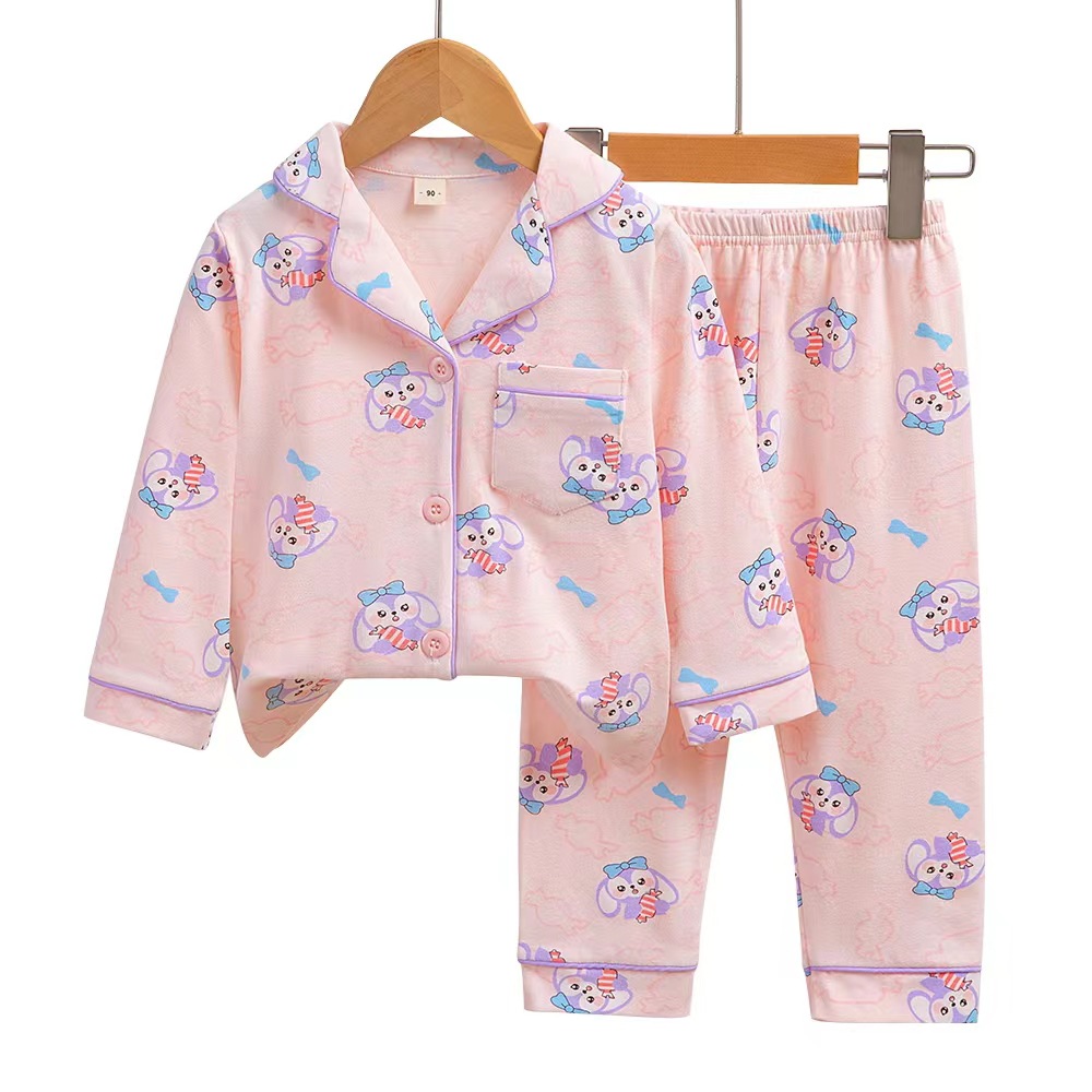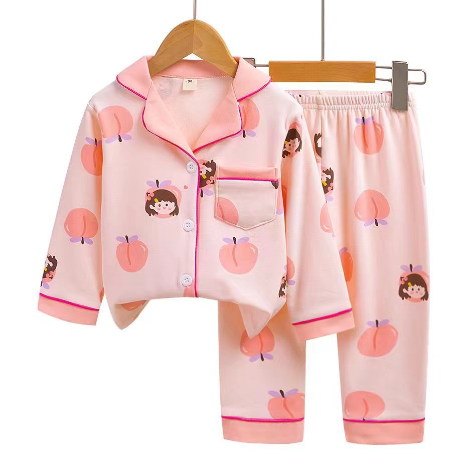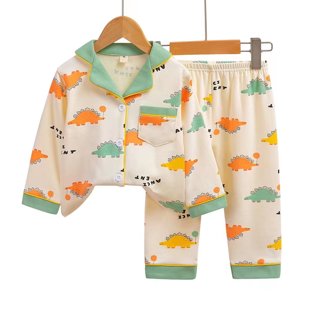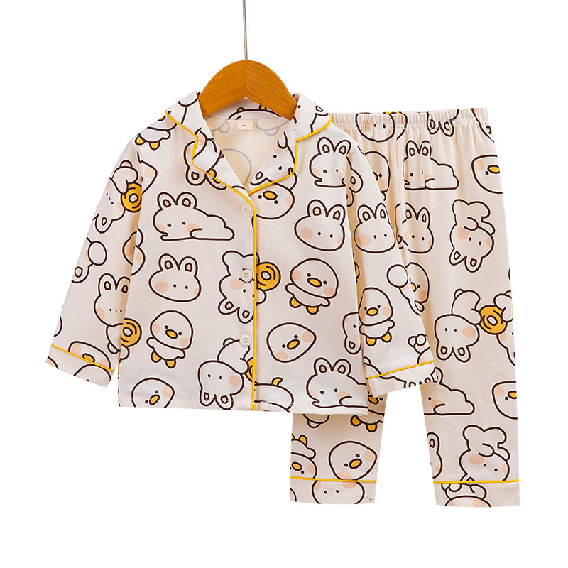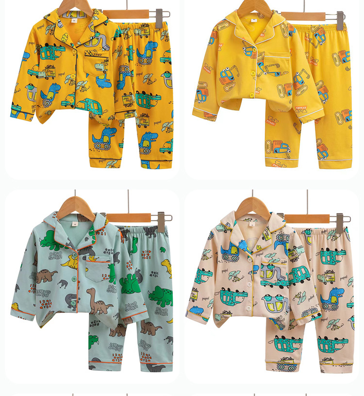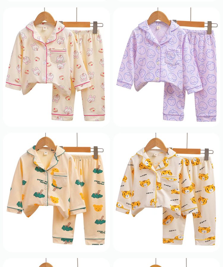 어린이의 긴팔 가정복 세트 라이크라 면 아기 가디건 잠옷 만화 아동복 사계절