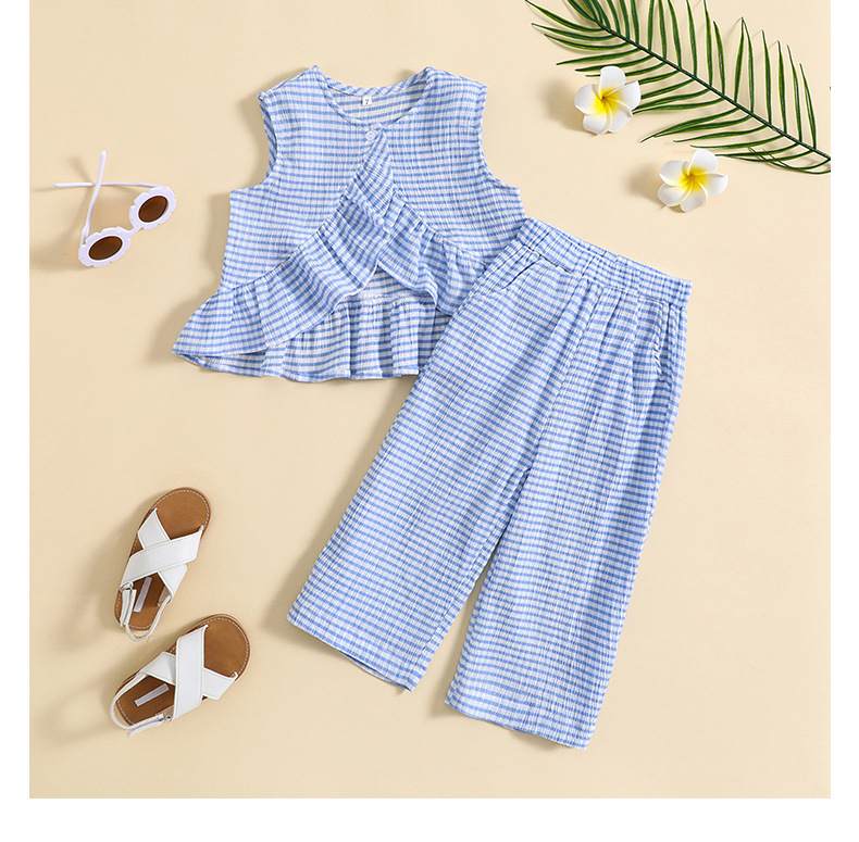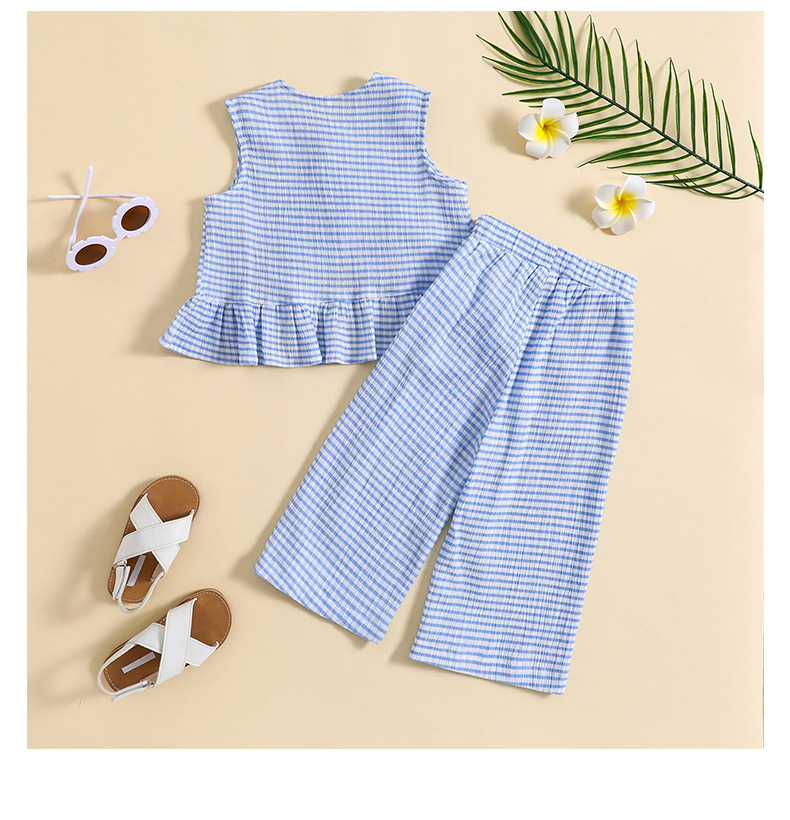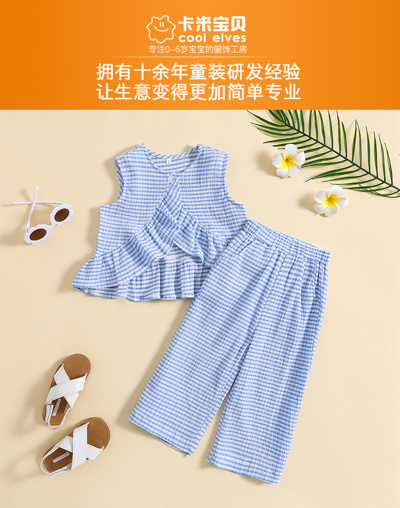 7CM-9CM-11CM-13CM-15CM   童装一手货源2023新款荷叶边女童夏装宝宝棉质格子两件套女童套装