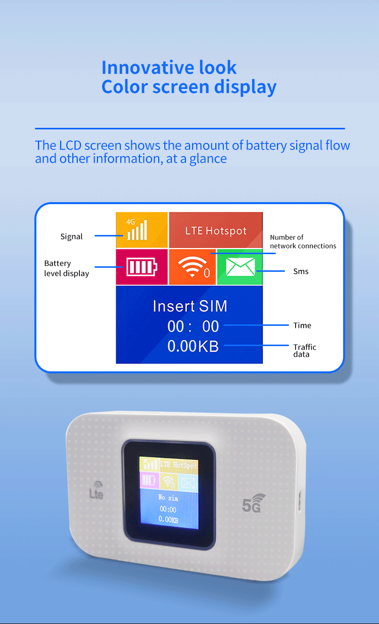 4G 휴대용 WiFi 배터리 3000 mA 컬러 디스플레이 SIM 카드 150M 휴대용 라우터 H809스토어 가기