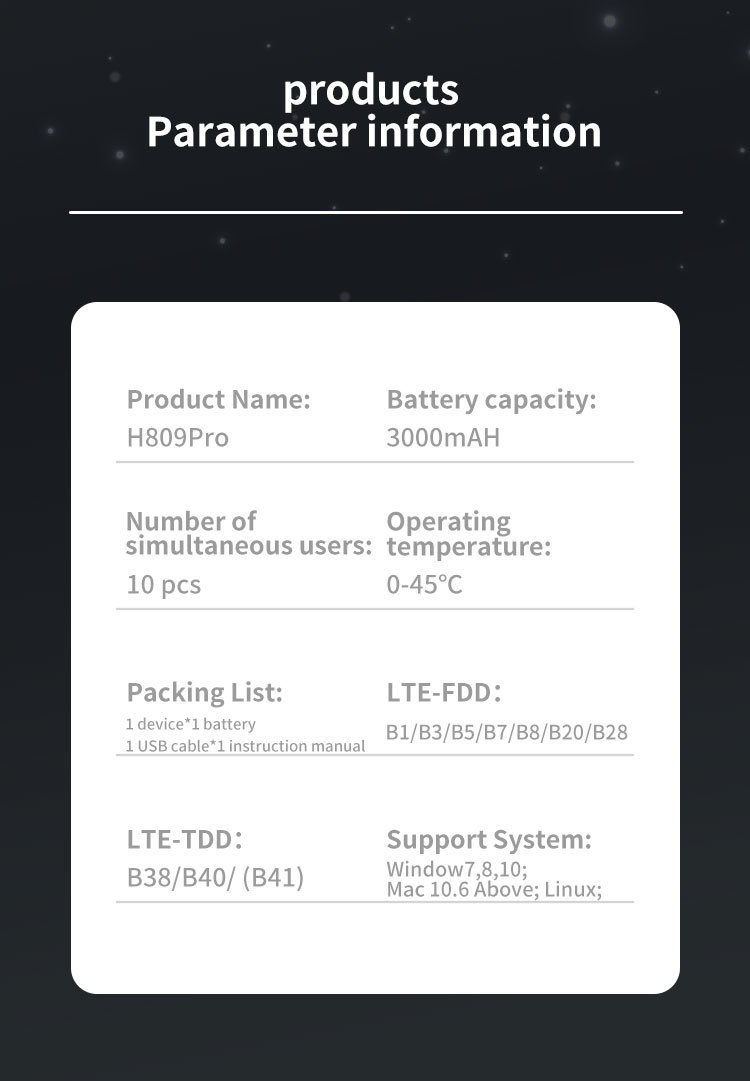 4G 휴대용 WiFi 배터리 3000 mA 컬러 디스플레이 SIM 카드 150M 휴대용 라우터 H809