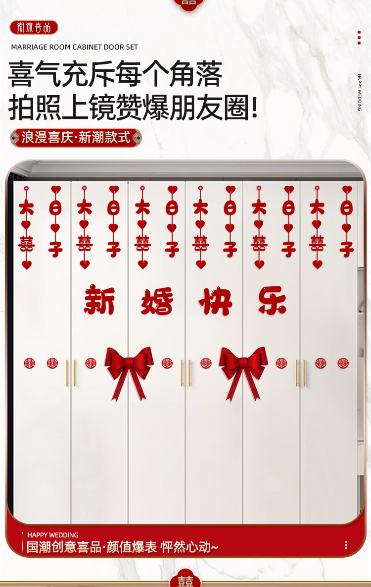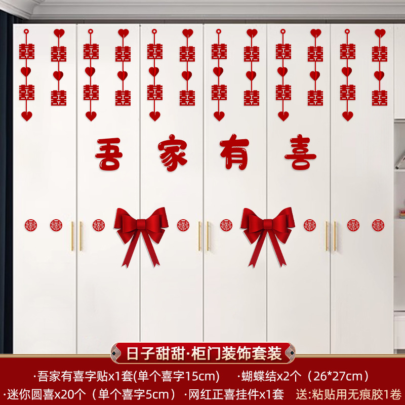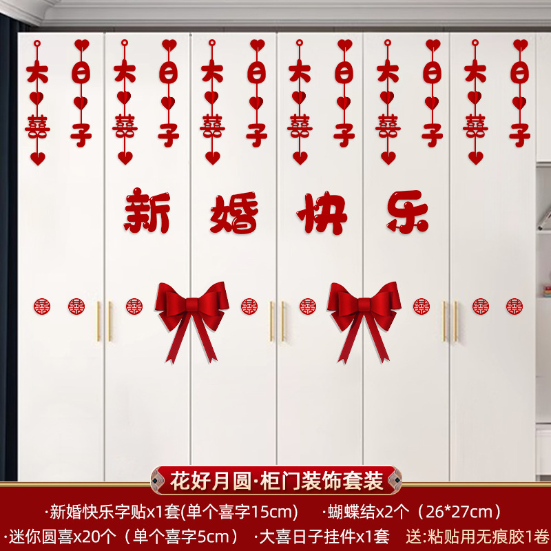 웨딩 룸 침실 옷장 장식 남자의 새 집 레이아웃 행복한 단어 스티커 여자의 웨딩 룸 꽃 세트스토어 가기
