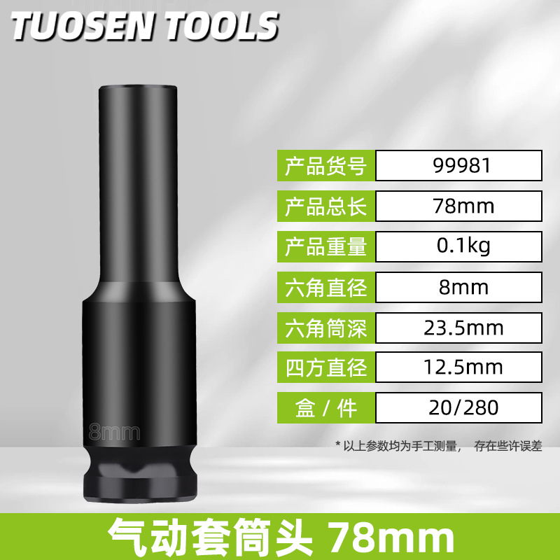 • 78 고출력 블랙 전동 렌치 연장 소켓 8, 99981, 미개봉 박스당 20개입, 240개/박스, 무게 0.1Kg