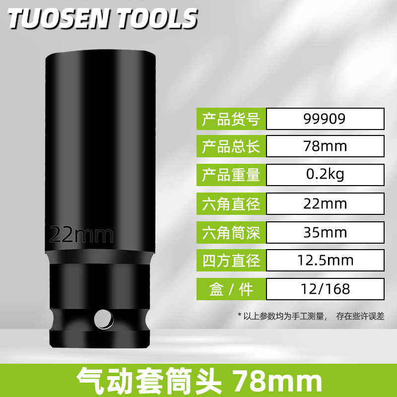 • 78 고강도 블랙 연장 소켓 22mm, 99909, 미개봉 박스당 12개입, 144개/박스, 무게 0.2KG