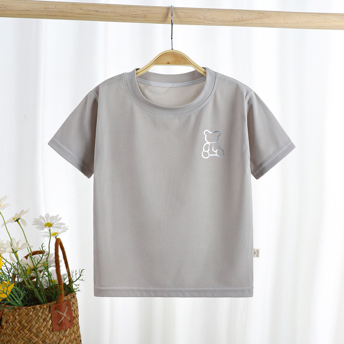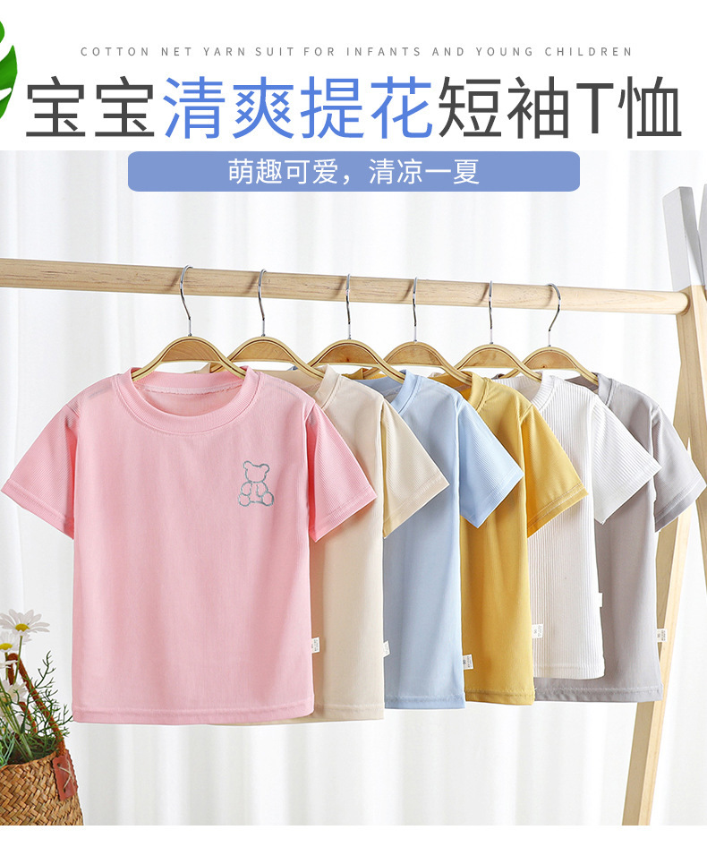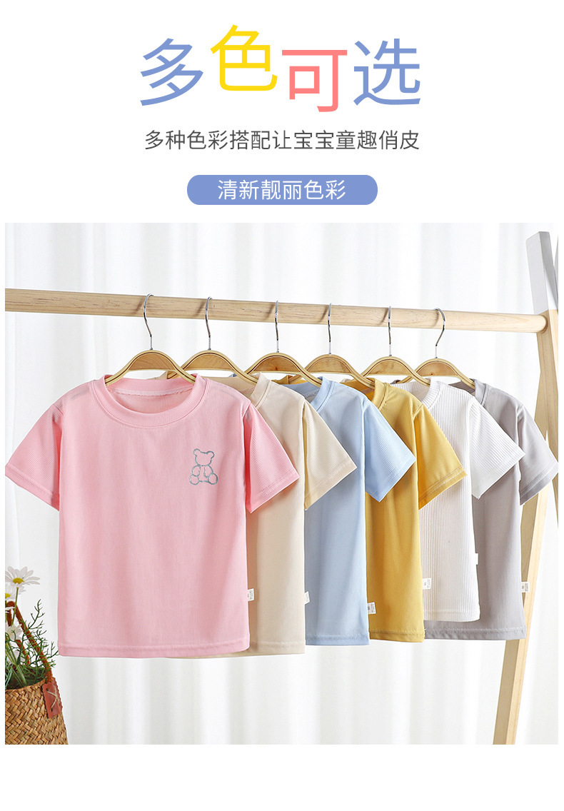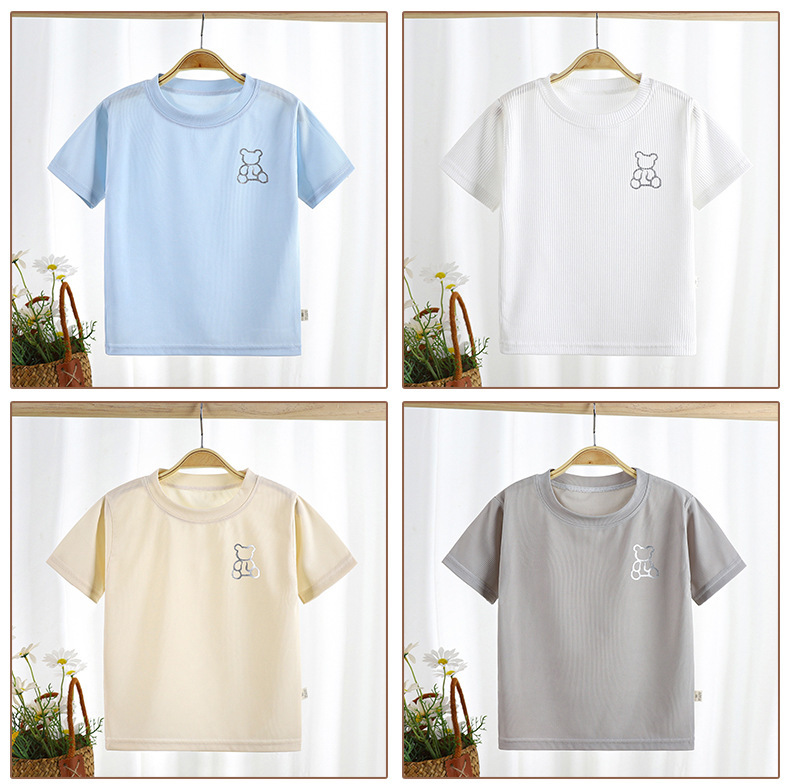 2023 여름 새로운 남성과 여성의 어린이 티셔츠 얼음 반팔 탑 공장 아동 의류 새로운 어린이 티셔츠 단색