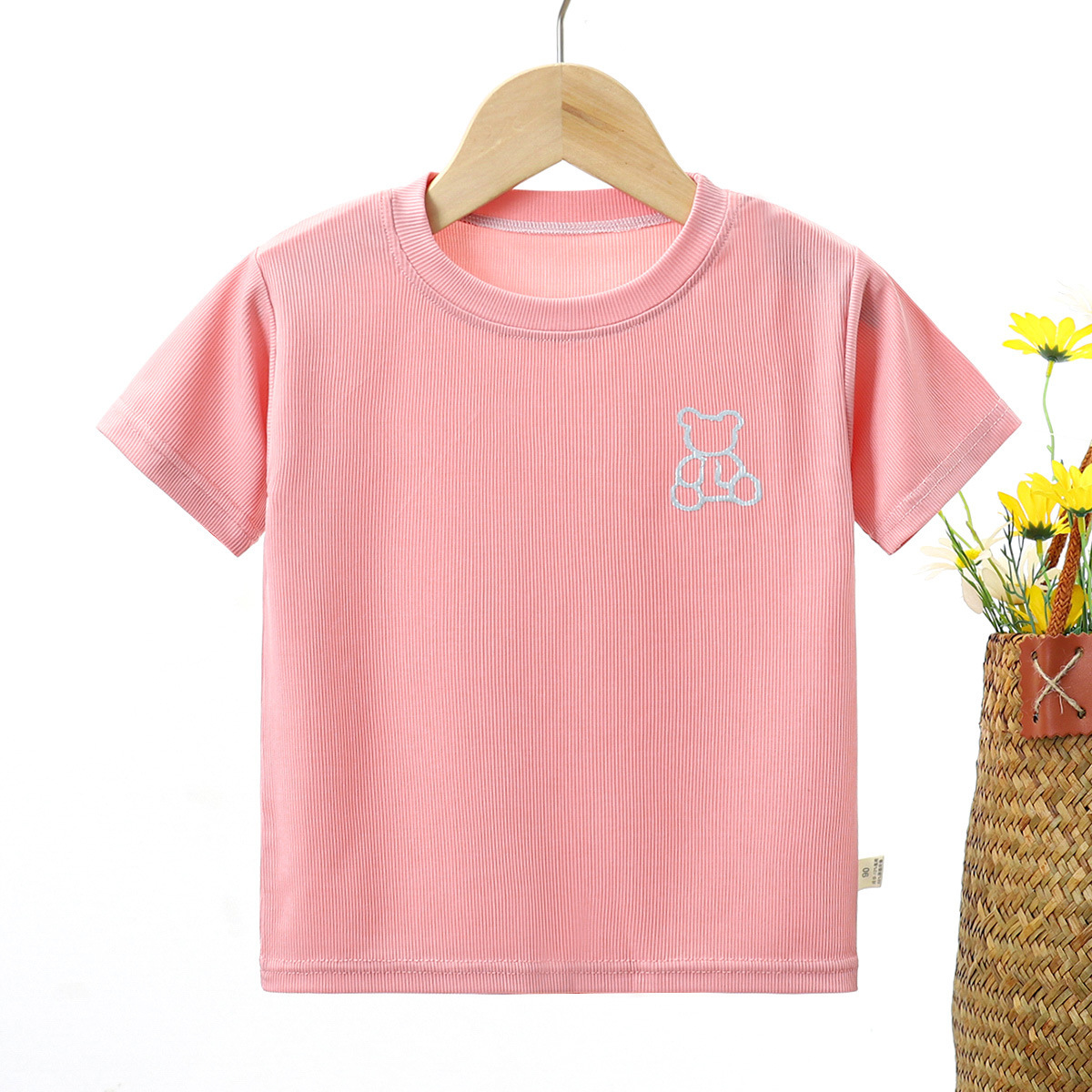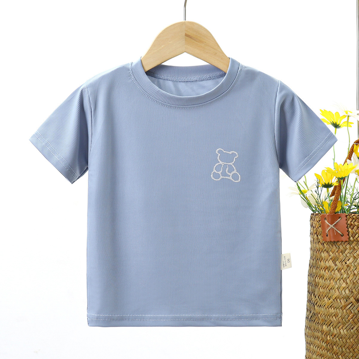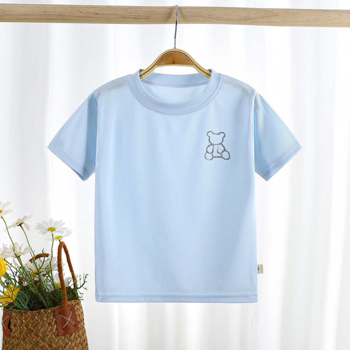 2023 여름 새로운 남성과 여성의 어린이 티셔츠 얼음 반팔 탑 공장 아동 의류 새로운 어린이 티셔츠 단색