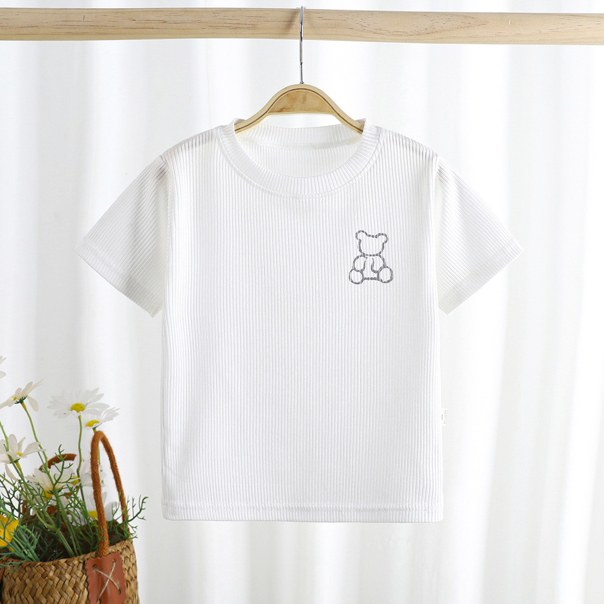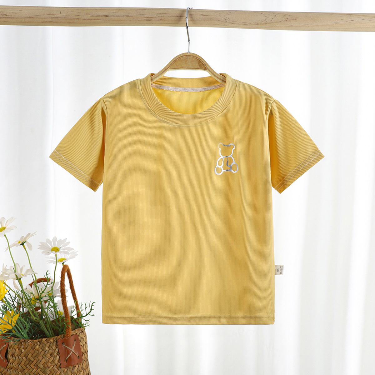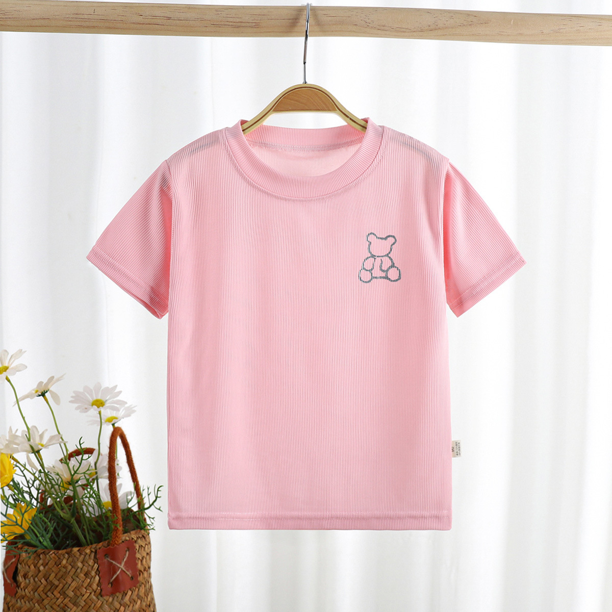 2023 여름 새로운 남성과 여성의 어린이 티셔츠 얼음 반팔 탑 공장 아동 의류 새로운 어린이 티셔츠 단색스토어 가기