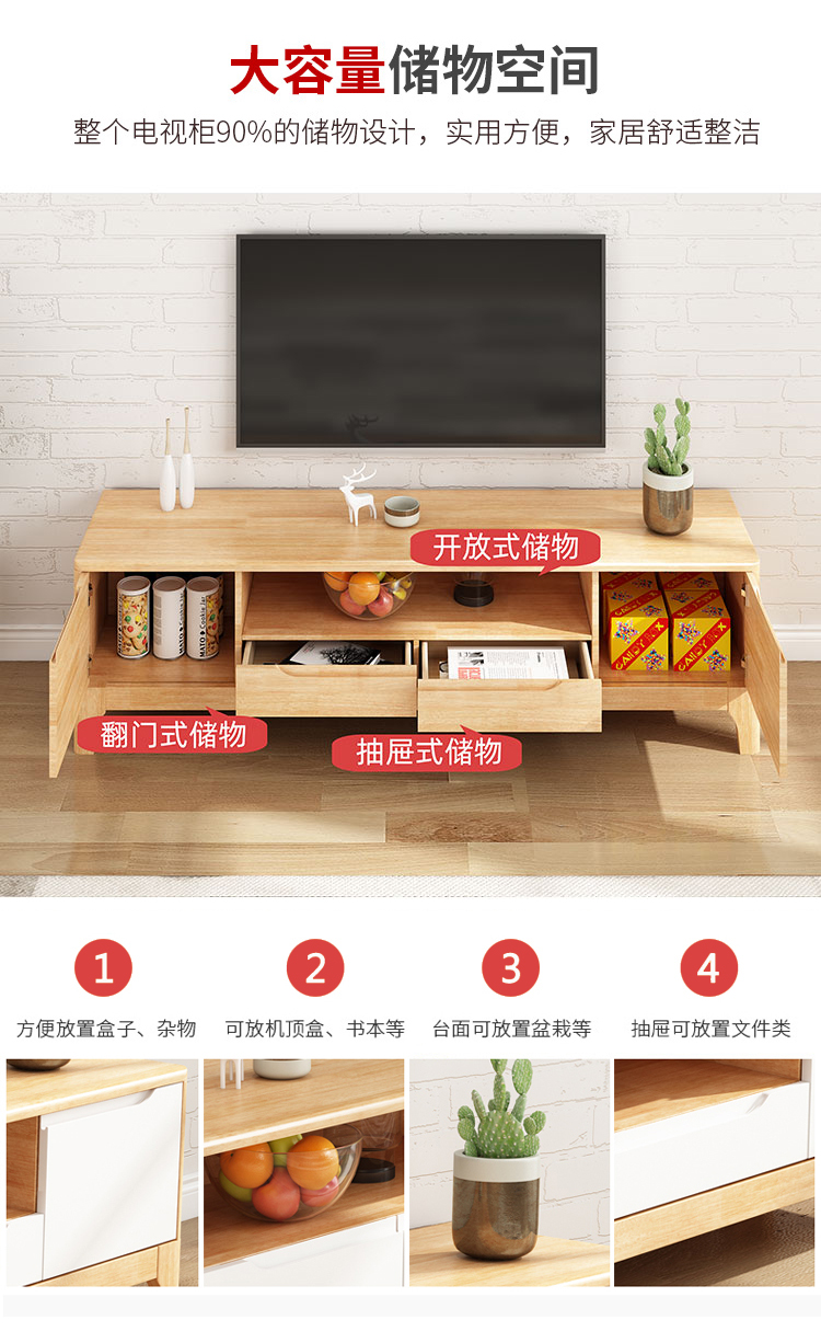 전체 단단한 나무 TV 캐비닛 현대 간단한 작은 아파트 1.2/1.5 미터 거실 침실 바닥 캐비닛 비디오 캐비닛스토어 가기