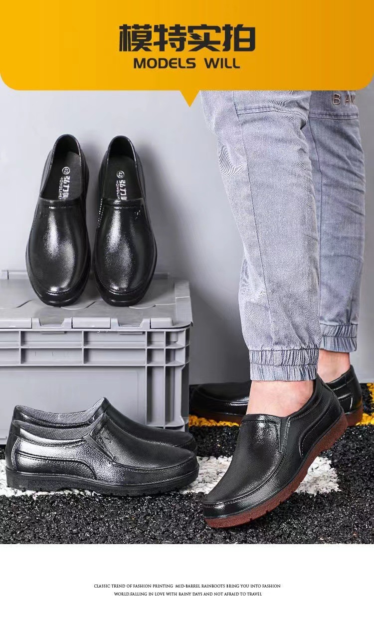 남성용 로우 컷 워터 슈즈 남성용 쇼트 튜브 패션 비 신발 내마모성 비 부츠 주방 요리사 신발 방수 작업 신발 남성 고무 신발