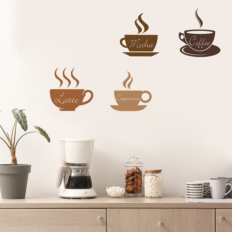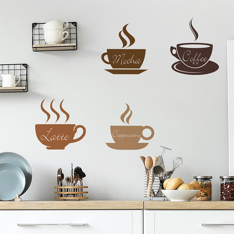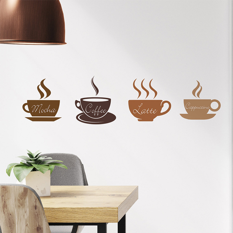 새로운 FX-F417 개인화 된 커피 컵 창조적 인 주방 식사 리노베이션 홀 배경 벽 장식 아름답게 벽 스티커 자체 접착