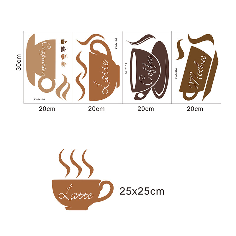 새로운 FX-F417 개인화 된 커피 컵 창조적 인 주방 식사 리노베이션 홀 배경 벽 장식 아름답게 벽 스티커 자체 접착스토어 가기
