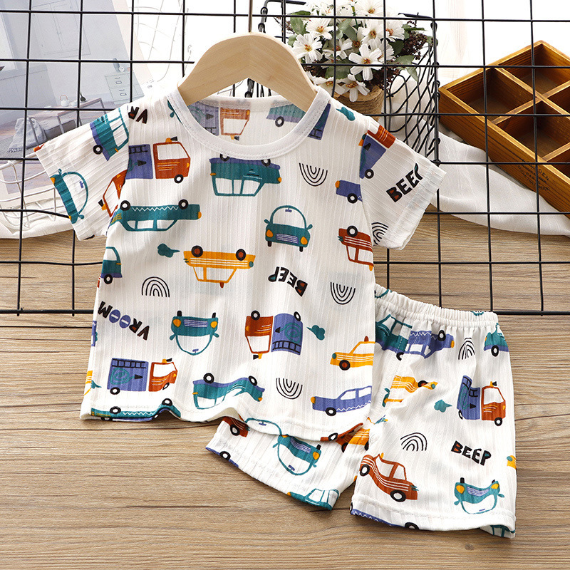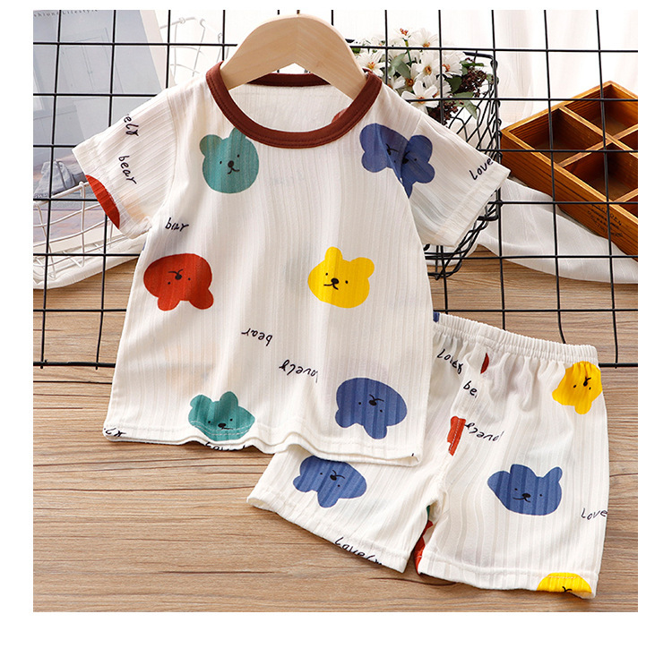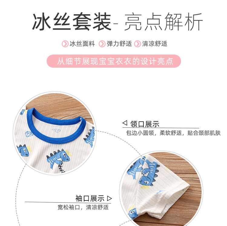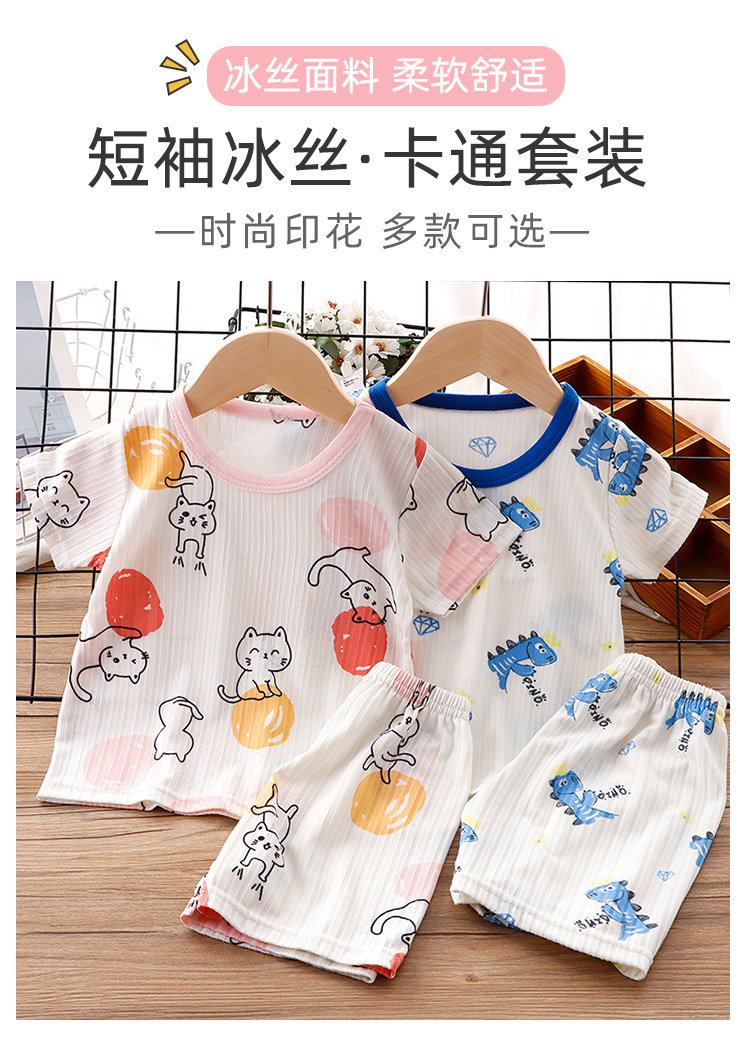 어린이 여름 옷 아기 아이스 실크 반팔 세트 아기의 얇은 잠옷 남아 에어컨 옷 여아 투피스 여름 세트스토어 가기