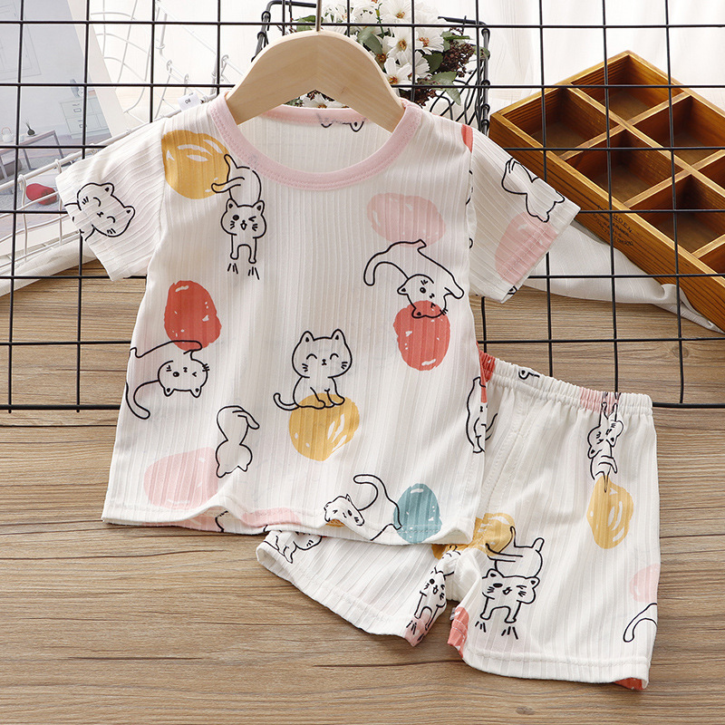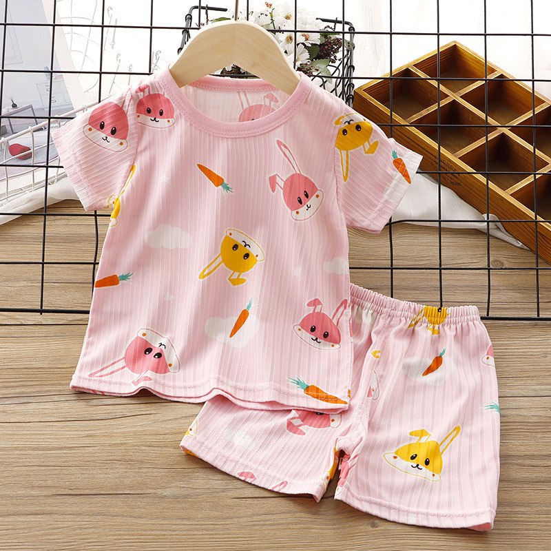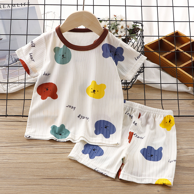 어린이 여름 옷 아기 아이스 실크 반팔 세트 아기의 얇은 잠옷 남아 에어컨 옷 여아 투피스 여름 세트