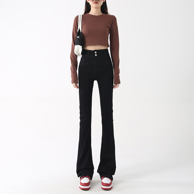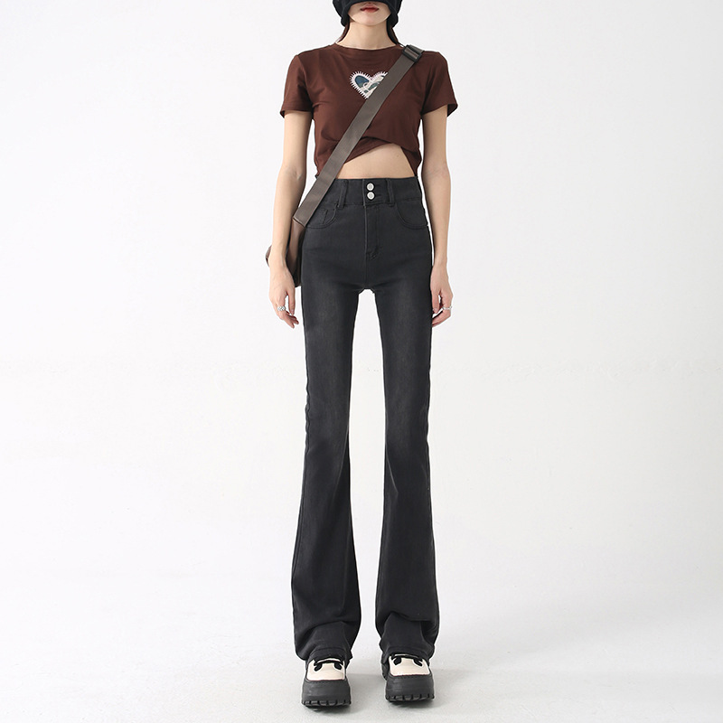 봄과 여름 플러스 사이즈 약한 청바지 여성의 새로운 슬림 핏 스트레치 통통녀 슬림 핏 드레이핑 와이드 레그 말굽 바지