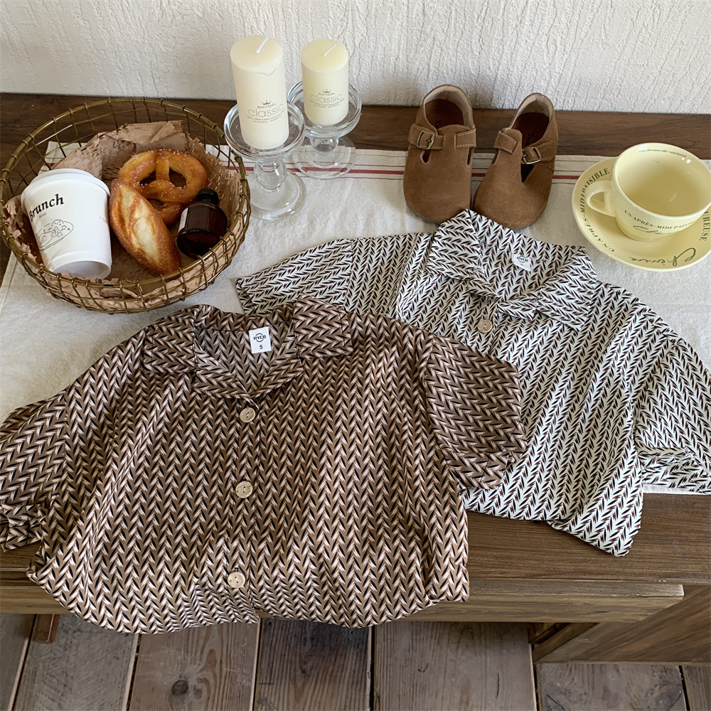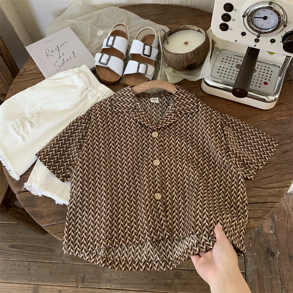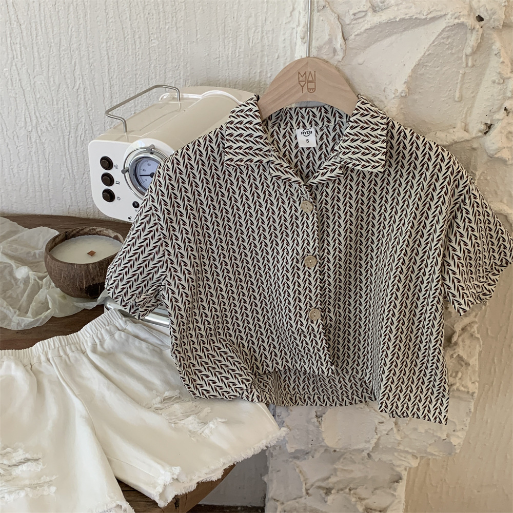 Zhili 아동복 남아 셔츠 여름 2023 새로운 여름 어린이 캐주얼 스타일 인쇄 캐주얼 반팔 셔츠 트렌디스토어 가기