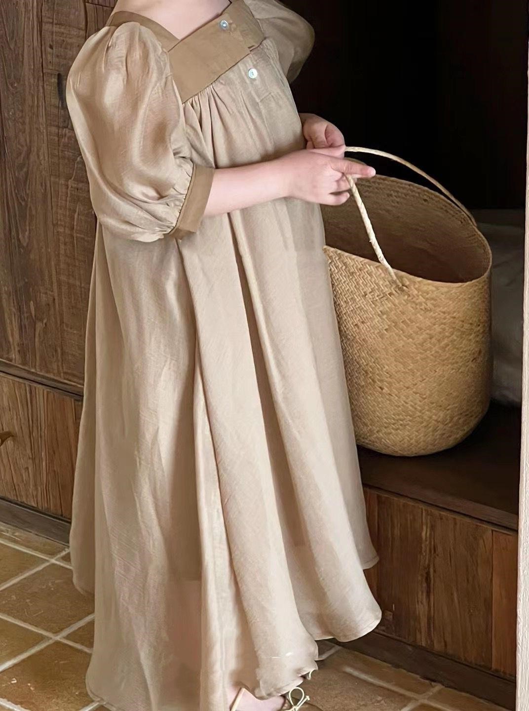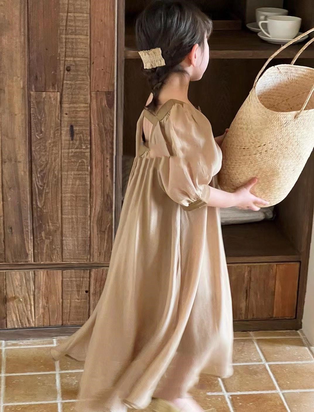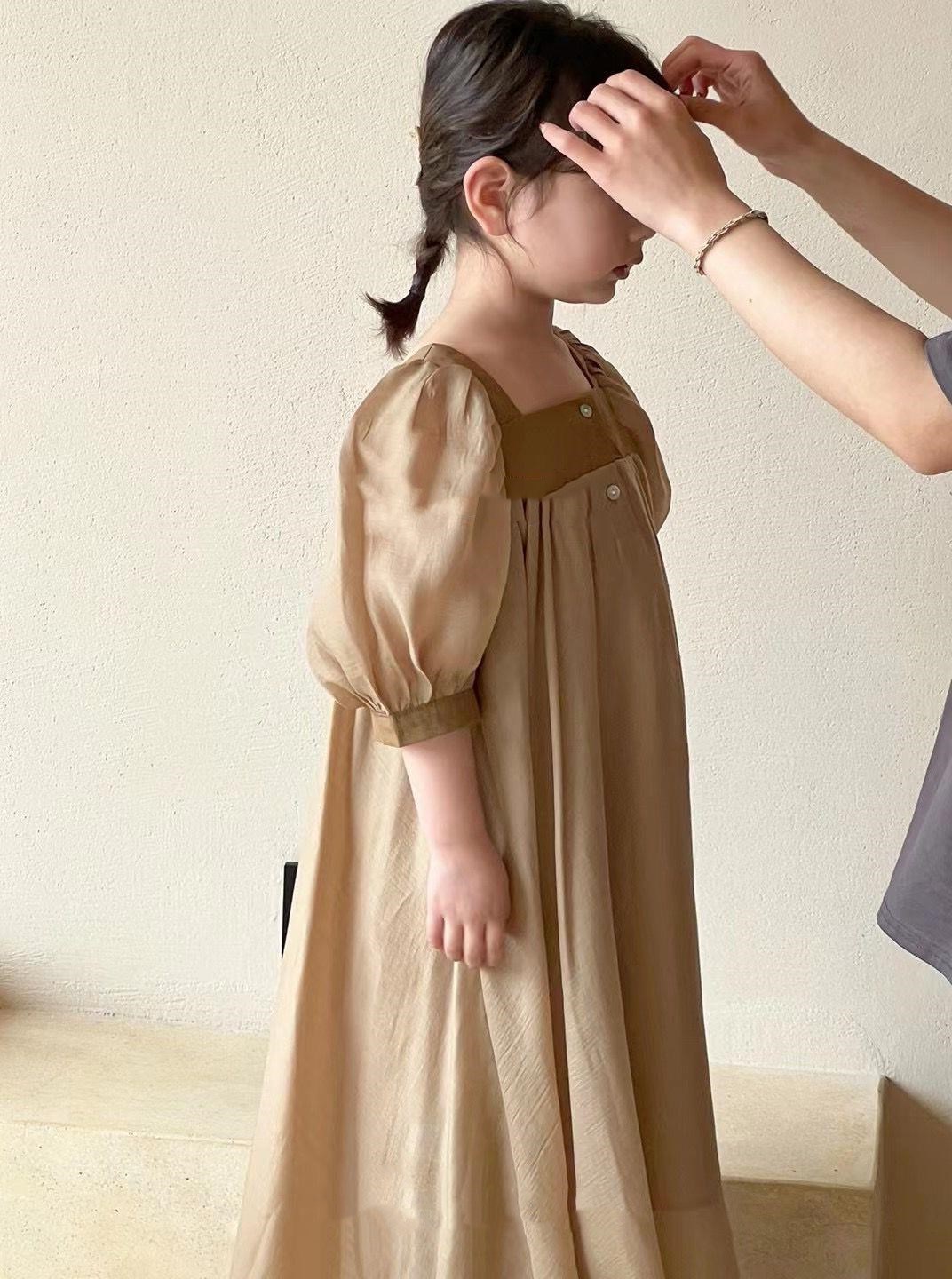 여아 스커트 달콤한 버블 슬리브 실크 원피스 공주 스커트 23 여름 새로운 대외 무역 아동 의류스토어 가기