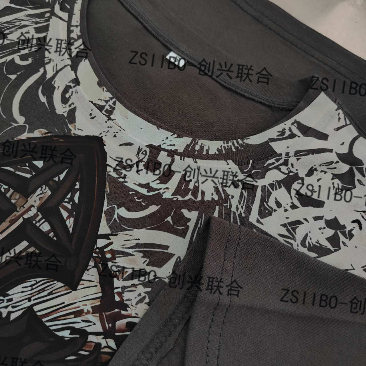 회색 녹색 십자가 전체 인쇄 고품질 무거운 면화 남성 티셔츠 여성 느슨한 반팔 유럽과 미국의 대외 무역