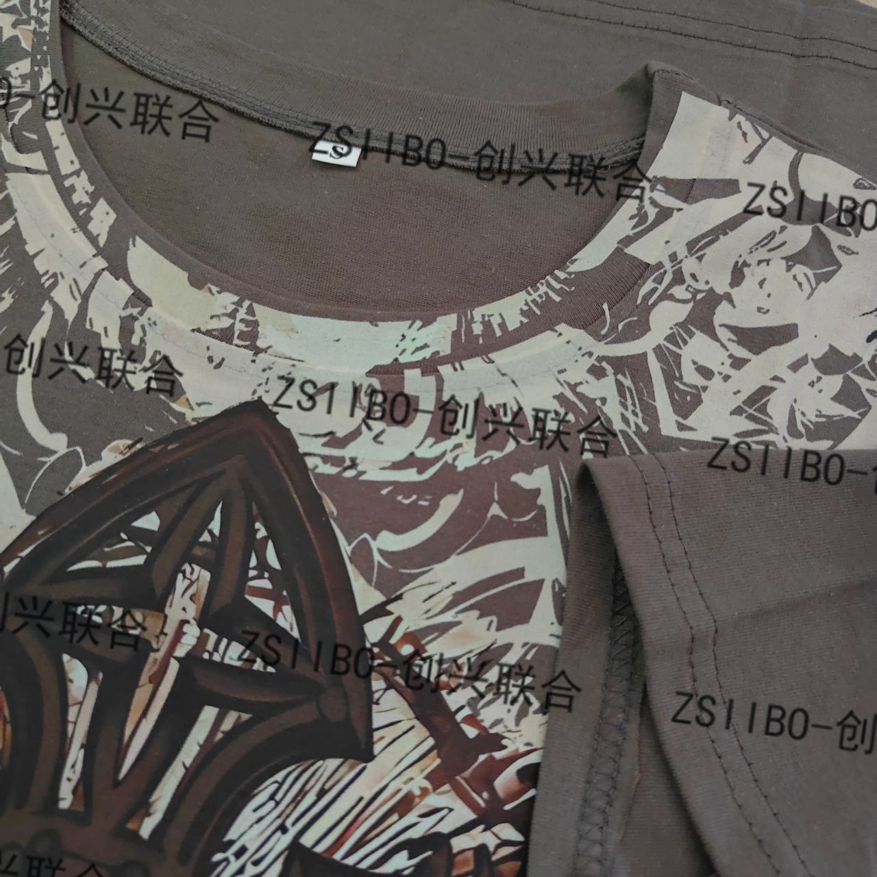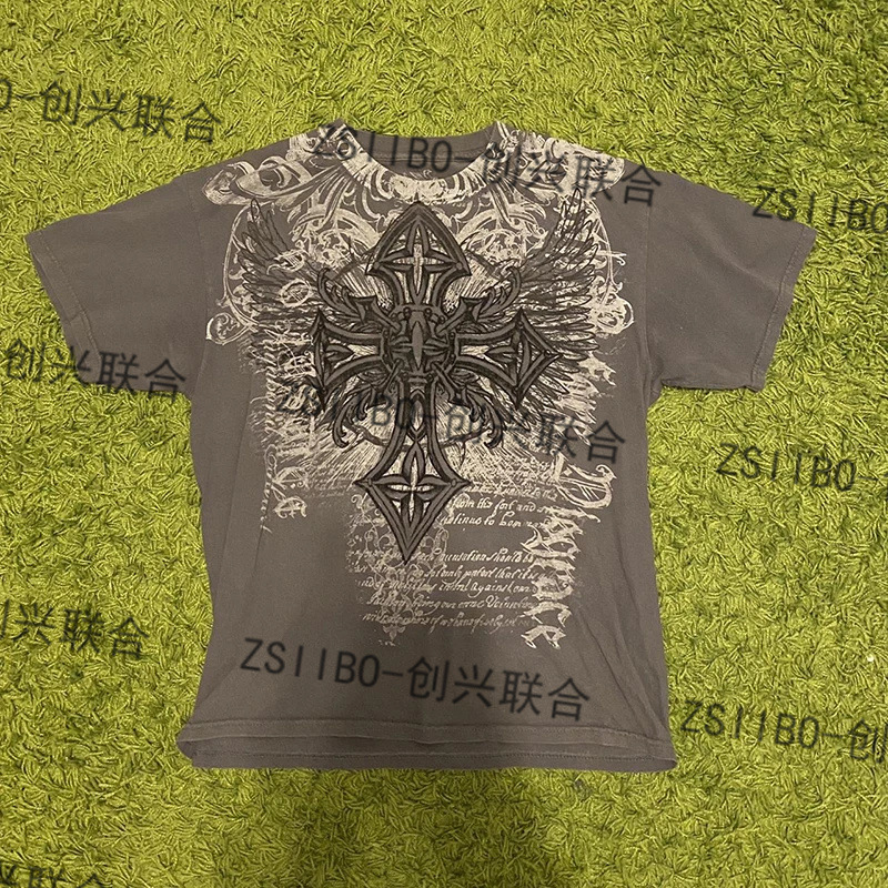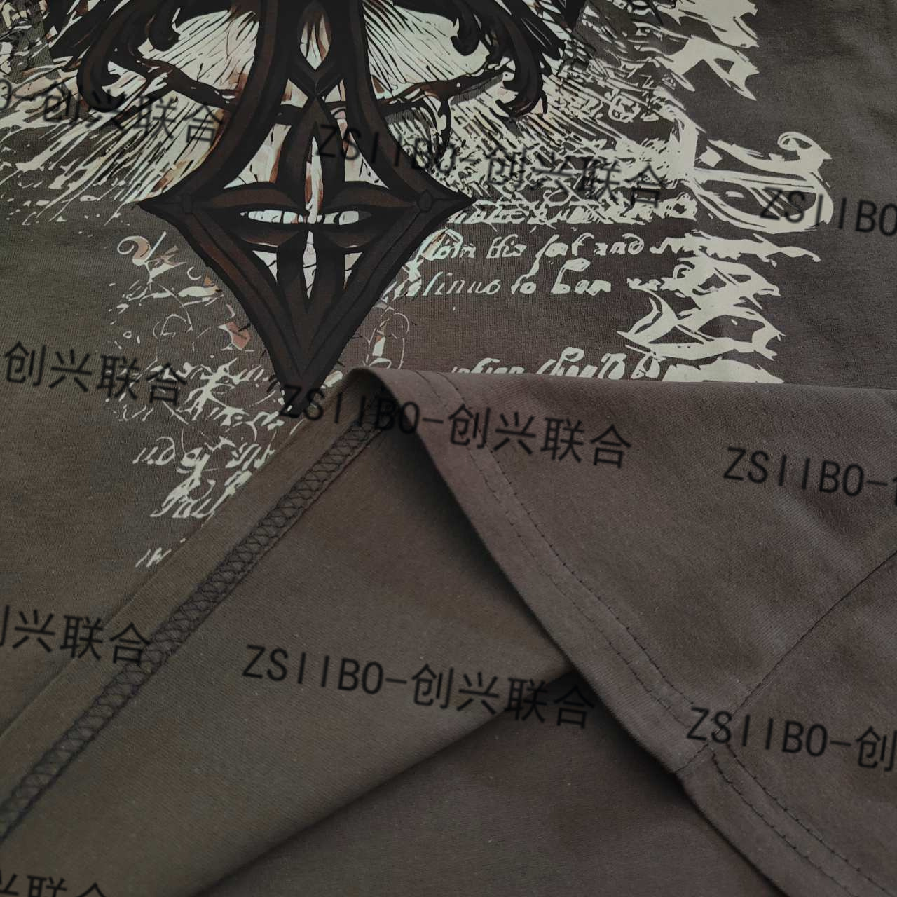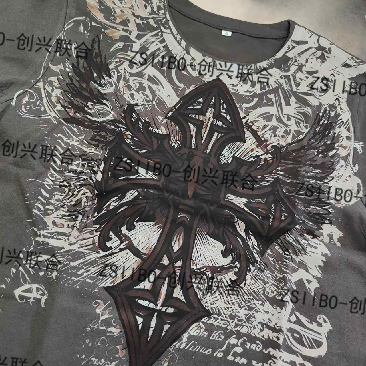 회색 녹색 십자가 전체 인쇄 고품질 무거운 면화 남성 티셔츠 여성 느슨한 반팔 유럽과 미국의 대외 무역스토어 가기