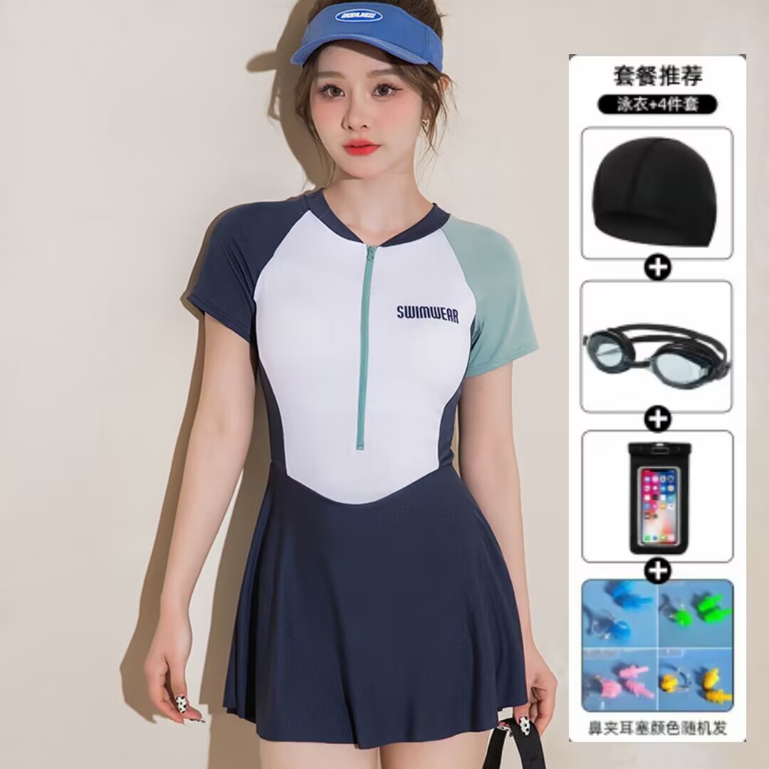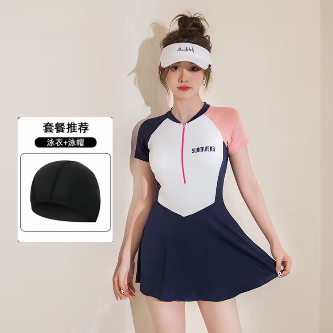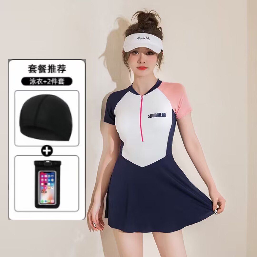 수영복 여성 여름 2024 새로운 스포티 스타일 보수적 인 원피스 스타일 섹시한 순수한 욕망 캐주얼 핫 수영복 세트